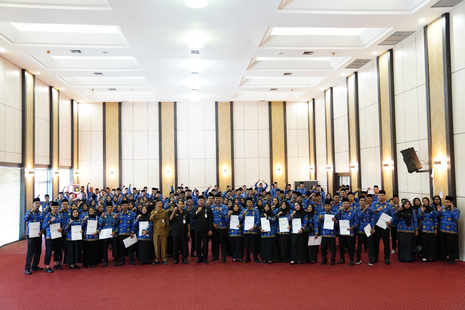 BENGKALIS, PROKOPIM - Sekretaris Daerah diwakili Asisten Adminsitrasi Umum Aulia menyerahkan Surat Keputusan kepada 228 Pegawai Pe