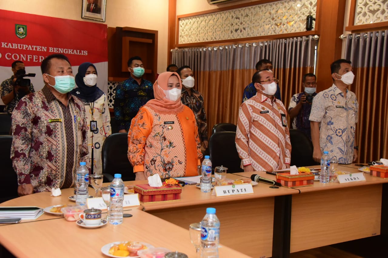 Ikut mendampingi zoom meeting tersebut Sekretaris Daerah H Bustami HY, Asisten Perekonomian dan Pembangunan H Heri Indra Putra, Kepala Inspektorat Bengkalis Radius Akima, Plt Kepala Dinas Komunikasi, Informatika dan Statistik Bengkalis H Adi Sutrisno, Plt Kepala Badan Pengelolaan Keuangan dan Aset Bengkalis H Aready.