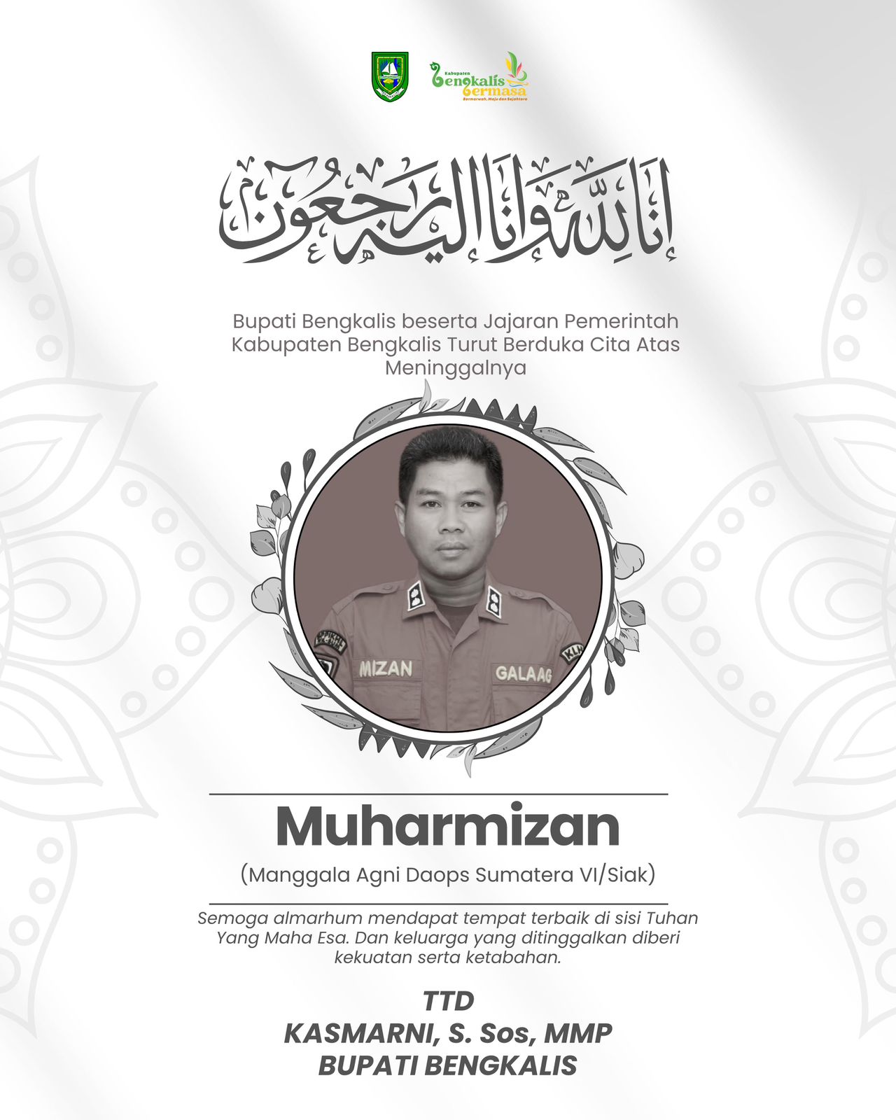 Bupati Bengkalis Sampaikan Duka Mendalam Atas Gugurnya Pejuang Karhutla di Medan Tugas
