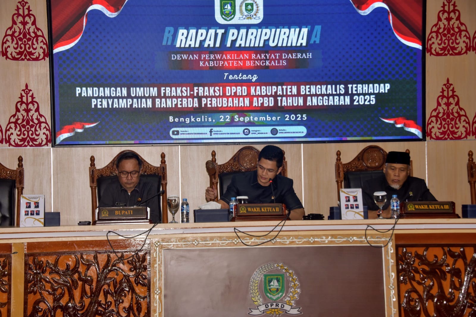 Rapat paripurna tersebut dipimpin Wakil Ketua II DPRD Kabupaten Bengkalis Hendrik Firnanda Pangaribuan yang dilaksanakan di Ruang Rapat Paripurna DPRD Bengkalis, Senin (22/9/2025).