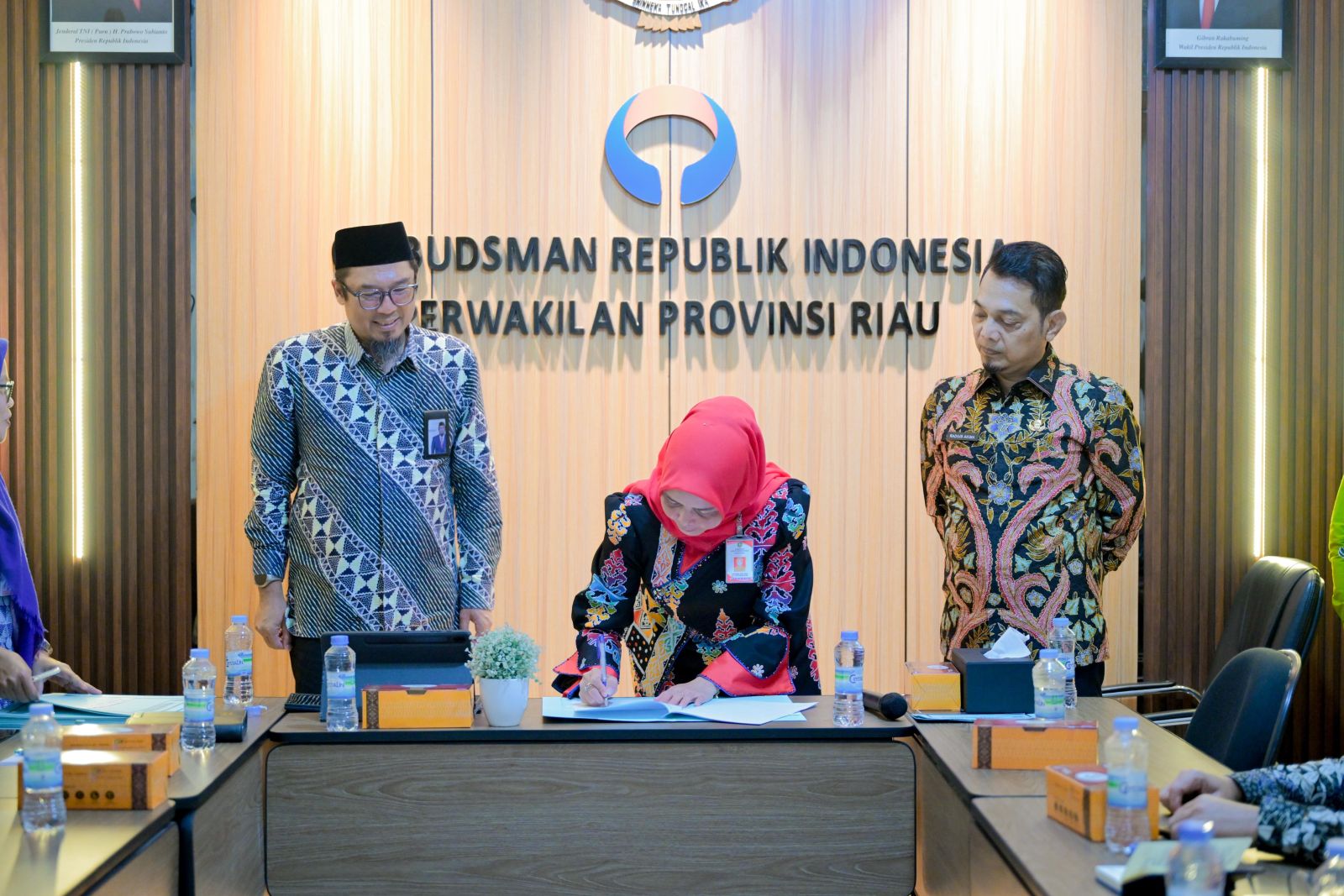 Pemkab Bengkalis Tandatangani Berita Acara Penilaian Mandiri Pelayanan Publik Bersama Ombudsman RI