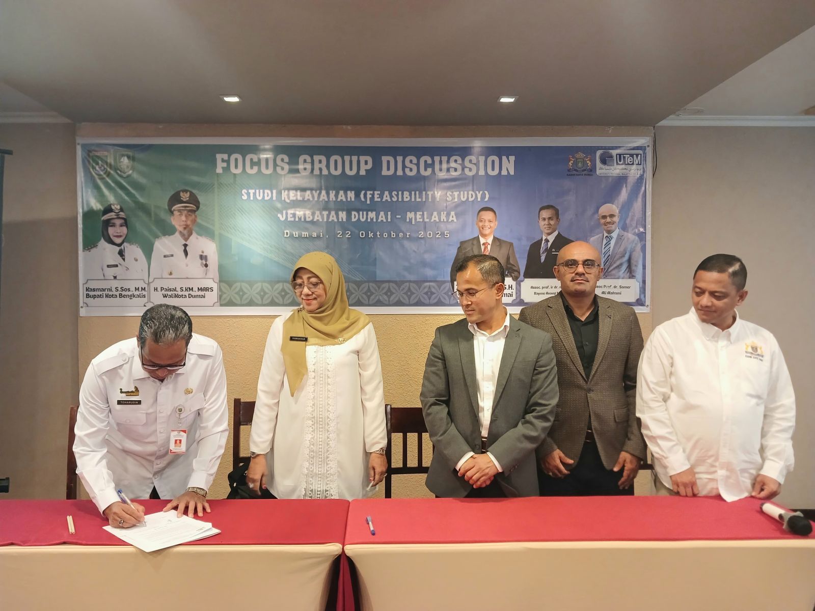 Pelaksanaan FGD ini merupakan rangkaian kajian awal proyek strategis internasional yang diinisiasi oleh Kerajaan Negeri Melaka dan dilaksanakan oleh UTeM Melaka, dengan melibatkan berbagai pemangku kepentingan dari Malaysia dan Indonesia, termasuk Pemerintah Kabupaten Bengkalis.