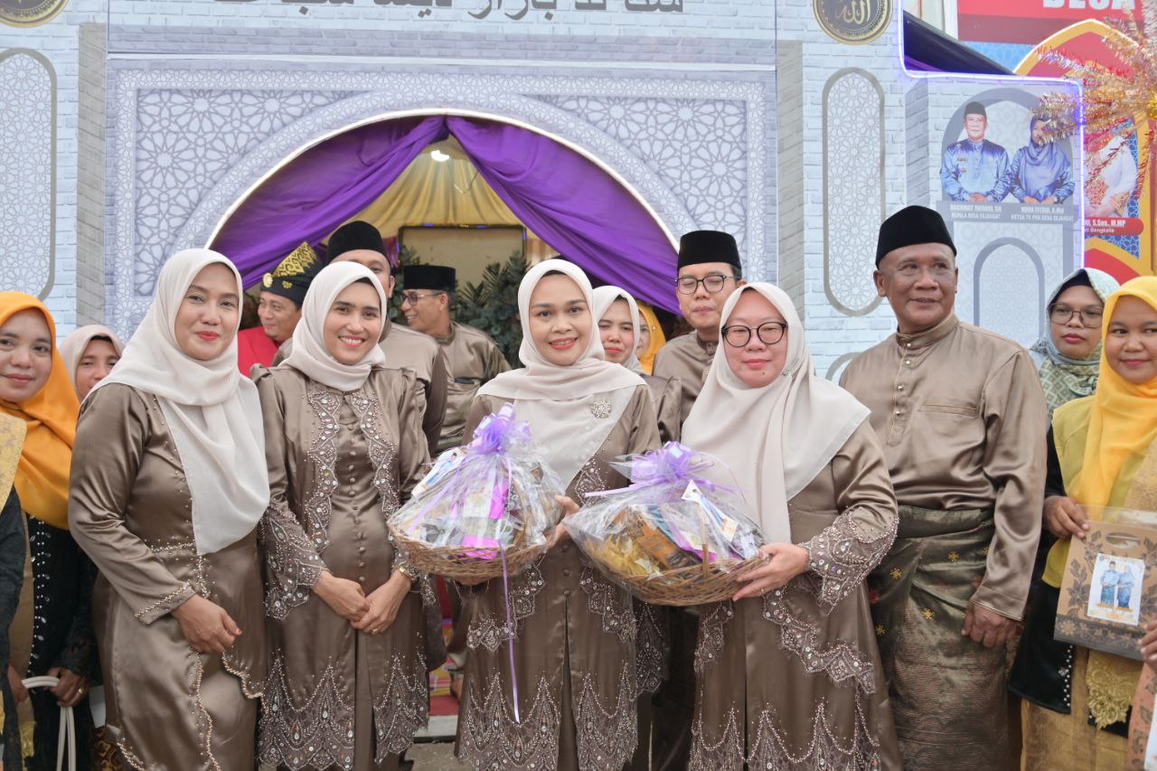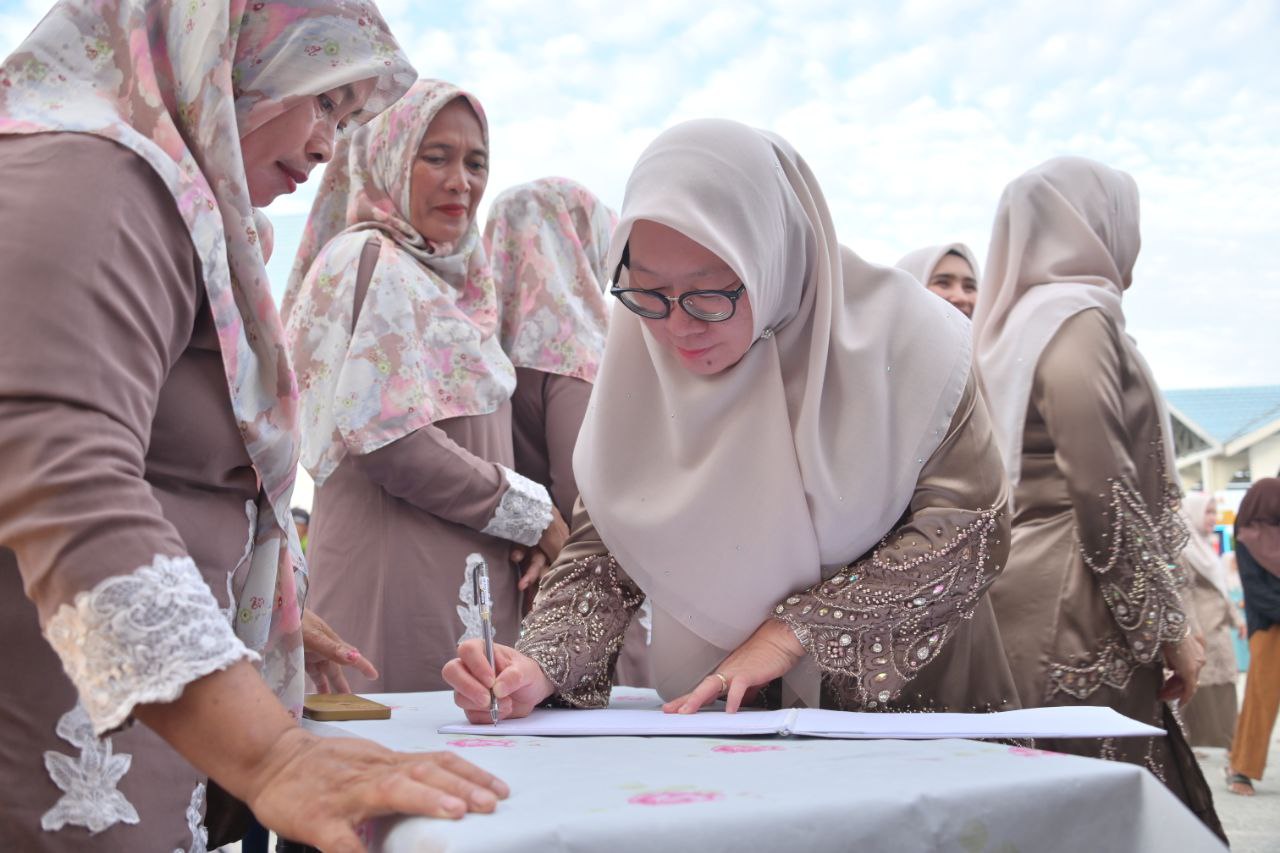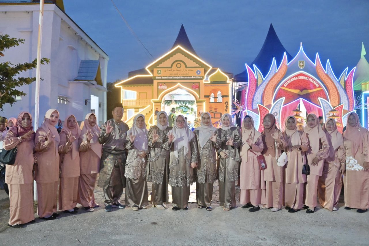 BUKIT BATU, PROKOPIM - Ketua Tim Penggerak PKK Kabupaten Bengkalis, Hj. Siti Aisyah memberikan apresiasi tinggi terhadap kreativitas dan inovasi para peserta bazar pada pelaksanaan Musabaqah Tilawatil Qur’an (MTQ) Ke-36 Tingkat Kecamatan Bukit Batu tahun 2025.