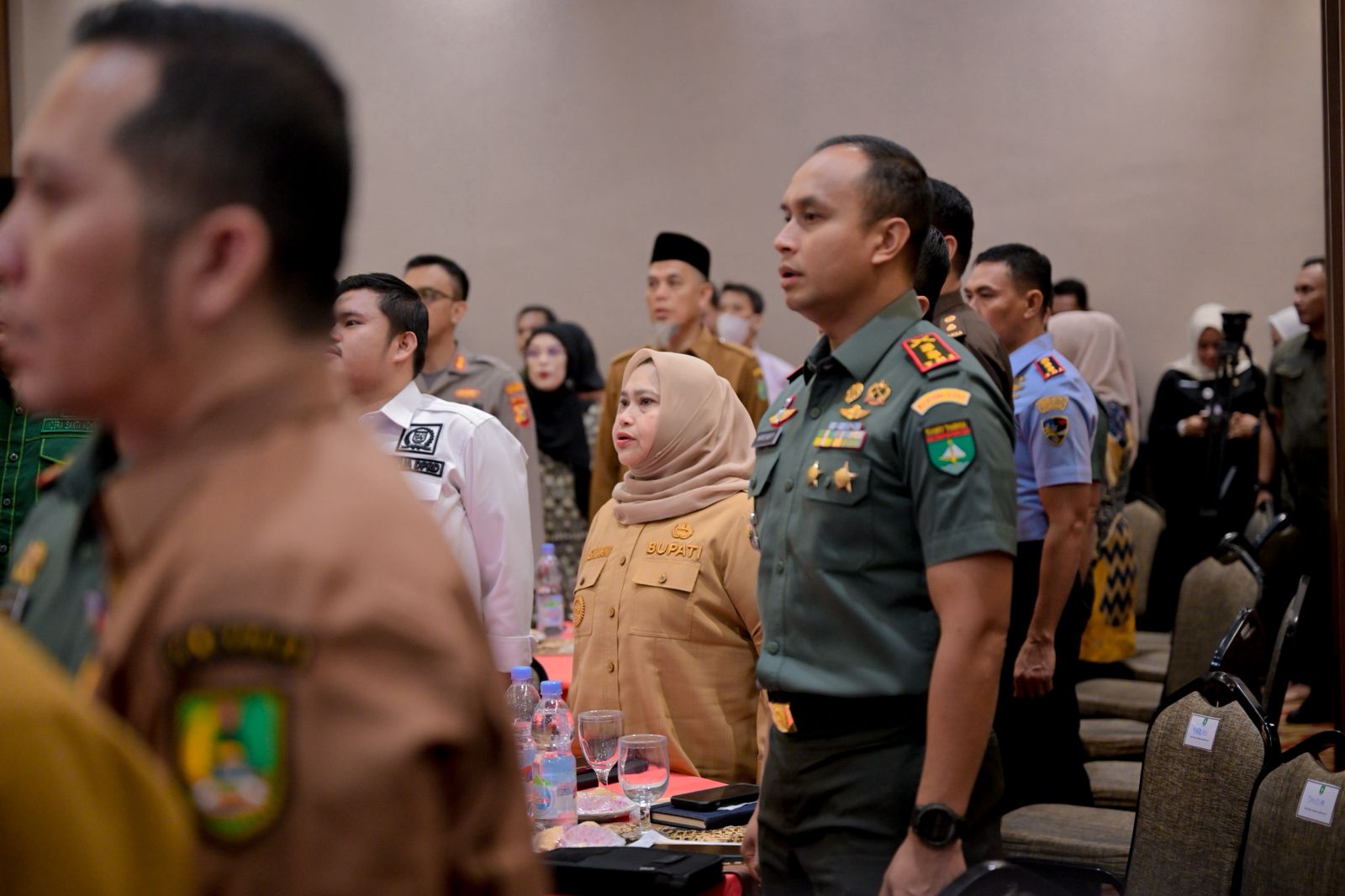 PEKANBARU, PROKOPIM - Bupati Bengkalis Kasmarni menghadiri kegiatan Pembinaan Forum Koordinasi Pimpinan Daerah (Forkopimda) di Daerah, yang digelar oleh Tim Koordinasi Pembinaan Forkopimda Tingkat Pusat, Kementerian Dalam Negeri Republik Indonesia, Selasa (28/10/2025).