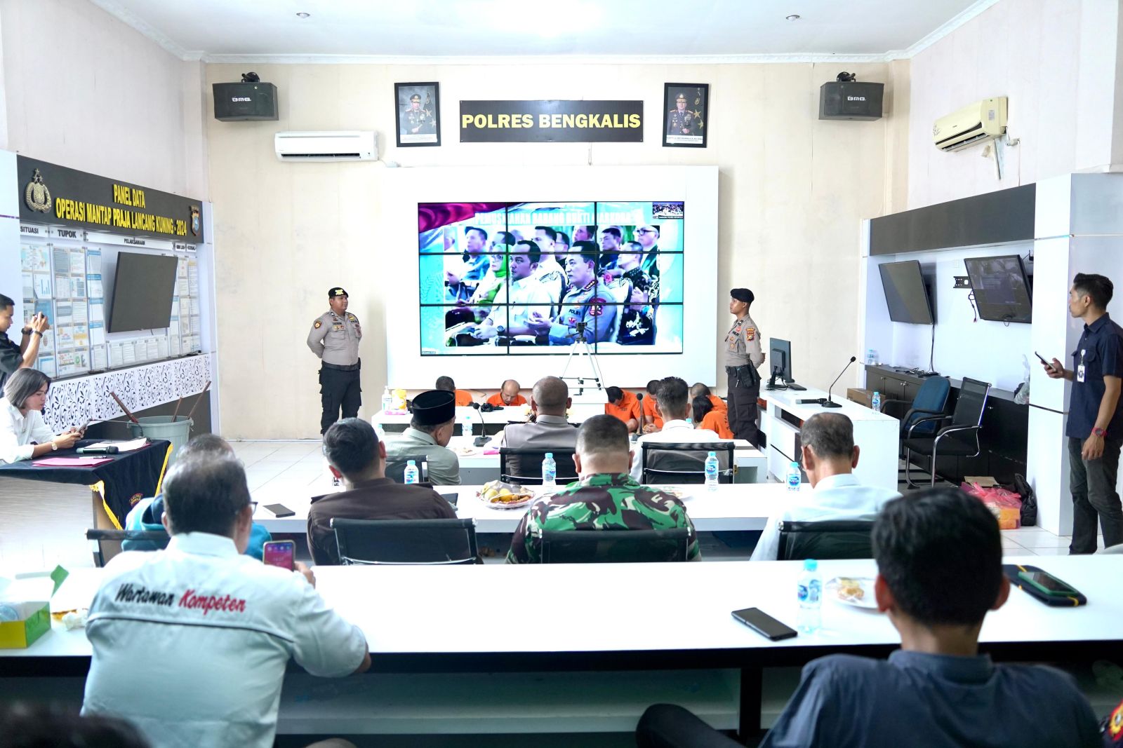 Turut hadir dalam proses pemusnahan di Polres Bengkalis saat itu, Anggota DPRD Bengkalis H. Zam-zami, Dandim 0303/Bengkalis Letkol Inf Haris Nur Priatno, diwakili Pasi Pers Kapten Inf Ucok Doni Samosir, Kajari Bengkalis diwakili Jaksa Fungsional Aditya Prastyo, Kalapas Bengkalis diwakili Kasi Kamtib Eflizar, Kepala Bea Cukai Bengkalis diwakili Diki Iskandar, Kasat Samapta AKP Cecep Sujapar serta tamu undangan lainnya.