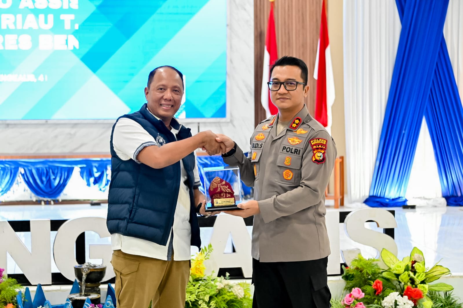 Sebagai penutup, dilakukan penyerahan plakat dan souvenir sebagai simbol apresiasi dan penguatan sinergi antara Pemerintah Kabupaten Bengkalis, Polri, dan instansi terkait dalam menjaga keamanan wilayah perbatasan.
