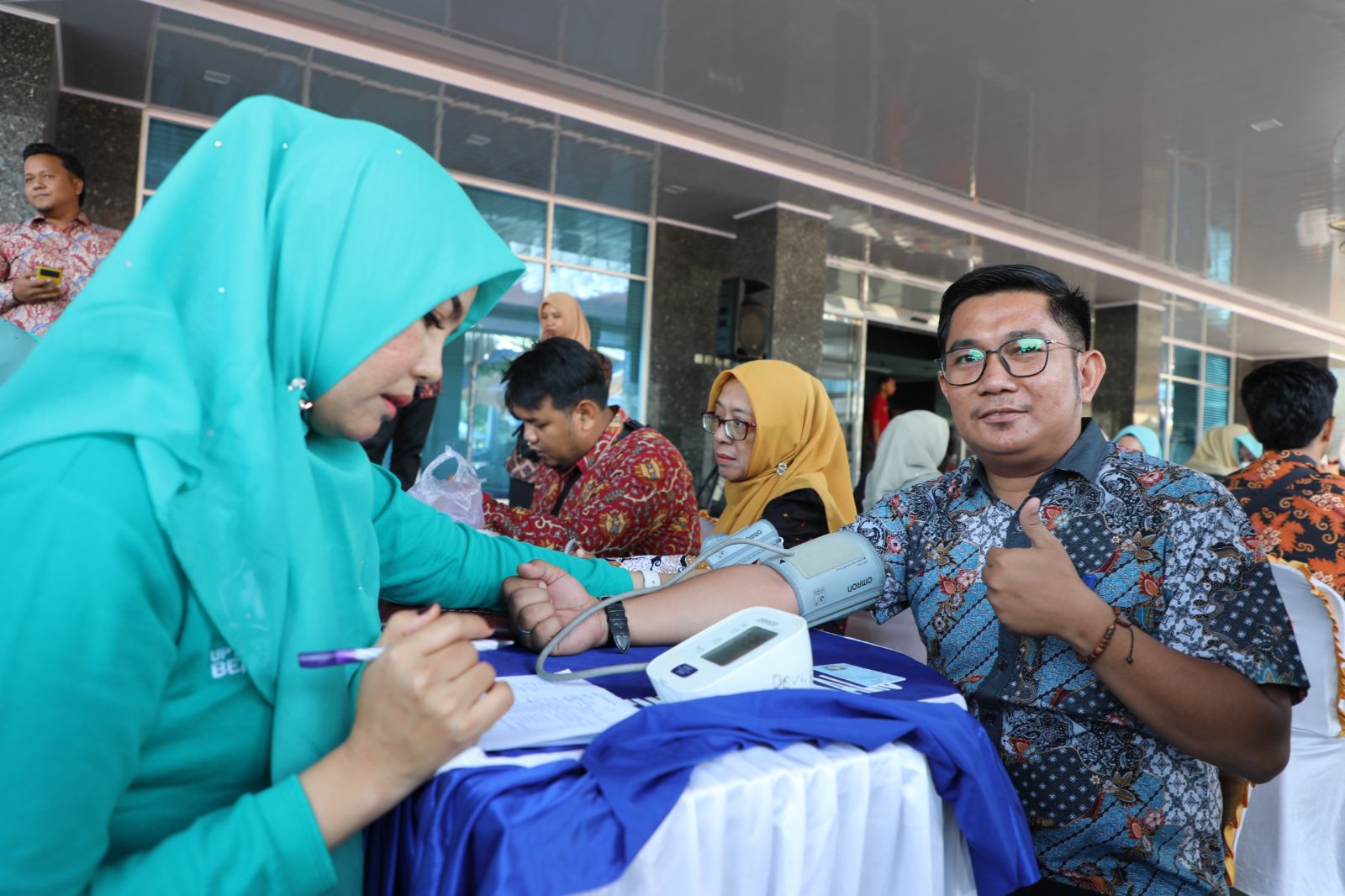 “Karena kegiatan seperti ini sangat membantu kami, terutama bagi pegawai dan masyarakat yang mungkin belum sempat ke Puskesmas atau RSUD untuk melaksanakan pemeriksaan, dengan adanya pemeriksaan gratis ini, kami bisa dengan mudah melakukan pemeriksaan untuk mengetahui kondisi kesehatan sejak dini,” ungkap Fathurrahman.