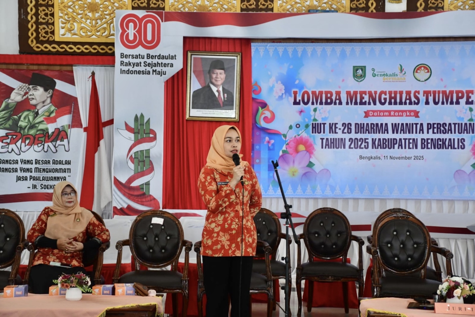 BENGKALIS, PROKOPIM – Halaman Wisma Daerah Bengkalis dipenuhi gelak tawa dan aroma menggugah selera pada Selasa, 11 November 2025. Puluhan ibu dari 26 unit Dharma Wanita Persatuan (DWP) Pemerintah Kabupaten Bengkalis beradu kreativitas dalam lomba menghias tumpeng, memeriahkan HUT Ke-25 DWP Kabupaten Bengkalis.