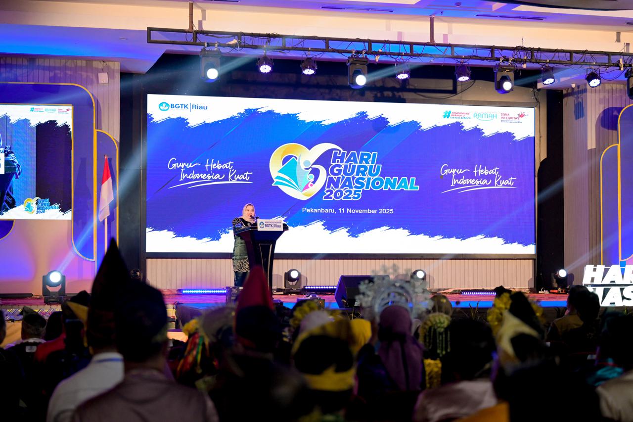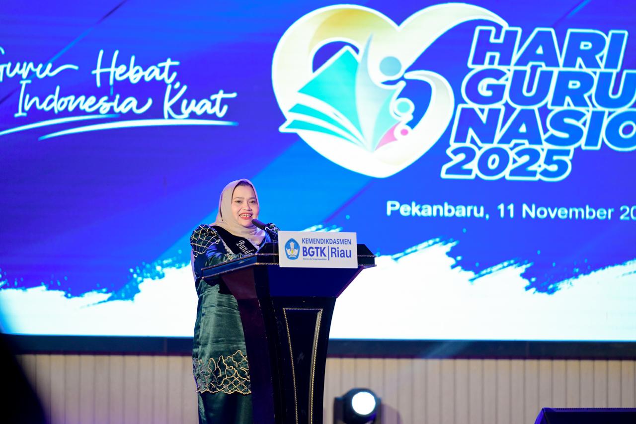 Dalam sambutannya, Kasmarni menyampaikan rasa syukur sekaligus apresiasi dan penghargaan yang tinggi kepada para guru dan tenaga kependidikan atas dedikasi, inovasi, serta kontribusi luar biasa mereka dalam memajukan pendidikan di Provinsi Riau.