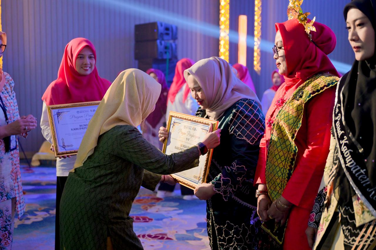 PEKANBARU, PROKOPIM — Bupati Bengkalis sekaligus Bunda PAUD Kabupaten Bengkalis, Kasmarni, menerima penghargaan atas dukungan dan komitmennya dalam menyukseskan program prioritas Kementerian Pendidikan Dasar dan Menengah (Kemendikdasmen), khususnya dalam peningkatan kompetensi guru dan tenaga kependidikan jenjang PAUD.