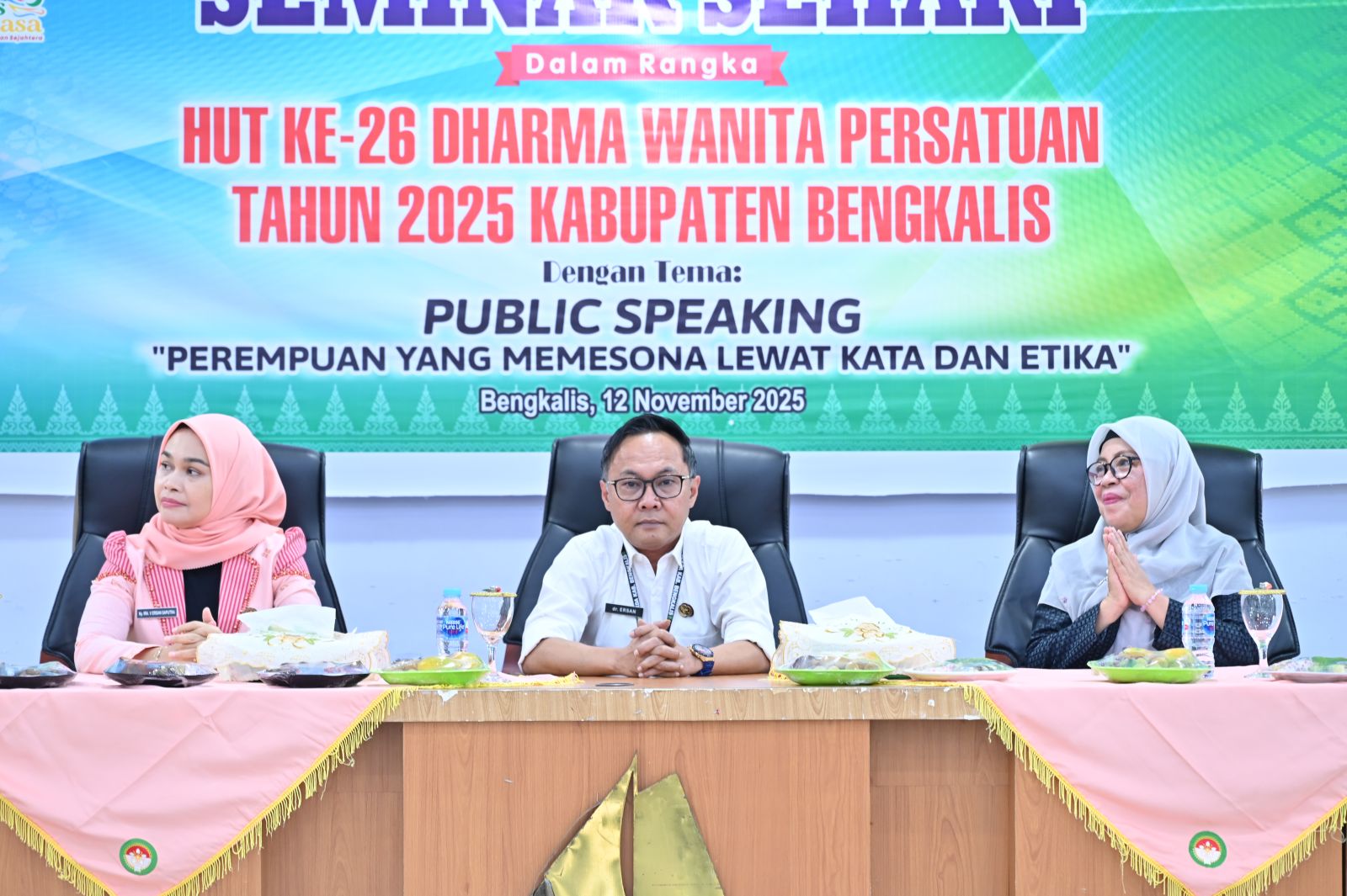 BENGKALIS, PROKOPIM - Sekretaris Daerah Kabupaten Bengkalis, Ersan Saputra TH, mewakili Bupati Bengkalis, membuka seminar sehari dalam rangka memperingati Hari Ulang Tahun (HUT) ke-26 Darma Wanita Persatuan (DWP) Kabupaten Bengkalis Tahun 2025, Rabu (12/11/2025).
