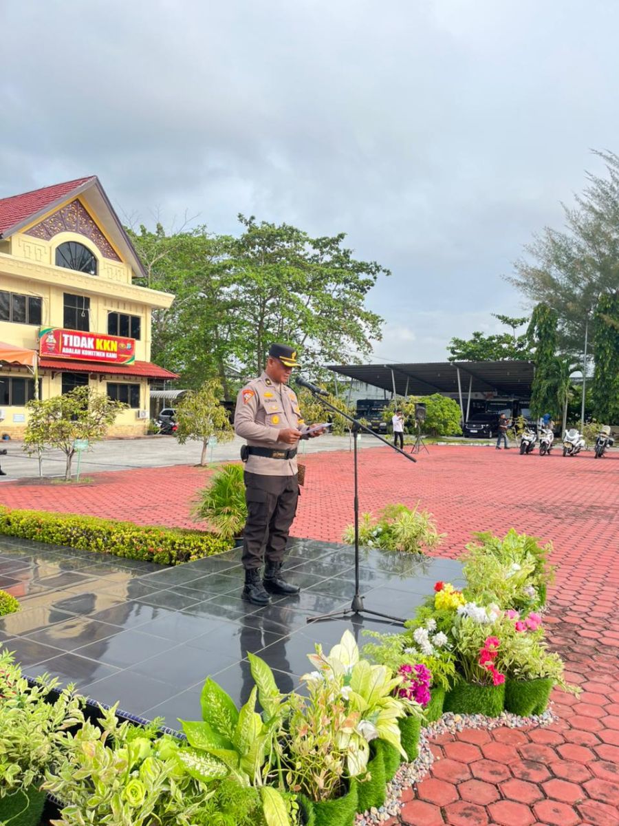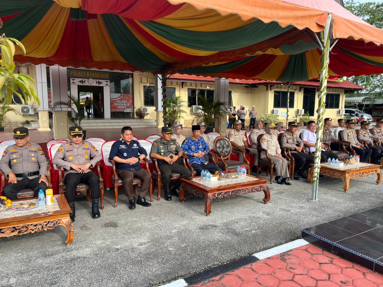 Tampak hadir mengikuti apel tersebut Dandim 0303/Bengkalis yang diwakili Kasdim Mayor Inf Suratno, Kejari Bengkalis diwakili Kasubsi I Bid Intelijen James Naibaho, Kasatlantas Polres Bengkalis AKP Vino Lestari, serta para Pejabat Utama Polres Bengkalis.
