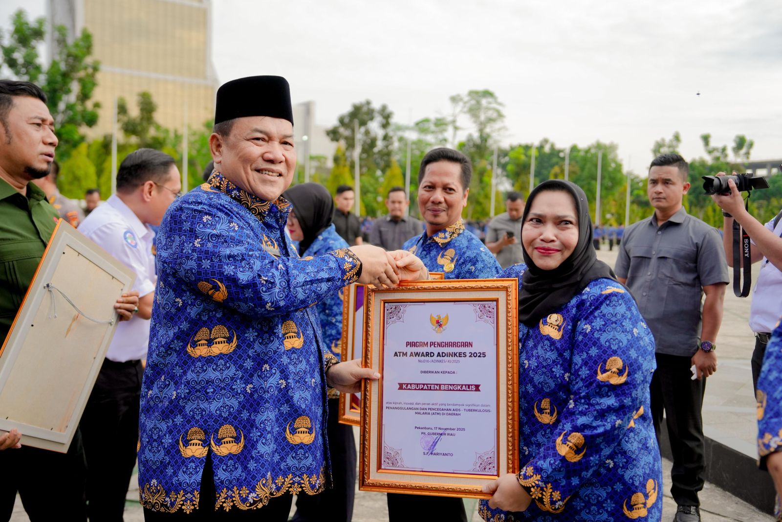 Selain itu, Bupati Kasmarni juga menerima ATM Award Adinkes Tahun 2025 atas kiprah, inovasi, dan peran aktif Pemerintah Kabupaten Bengkalis dalam menekan angka AIDS, Tuberkulosis, dan Malaria (ATM). Penghargaan ini diberikan karena berbagai program strategis penanggulangan penyakit menular yang dijalankan terbukti memberikan dampak nyata terhadap peningkatan kesehatan masyarakat. Kedua penghargaan ini diserahkan langsung oleh Plt. Gubernur Riau, SF Hariyanto.