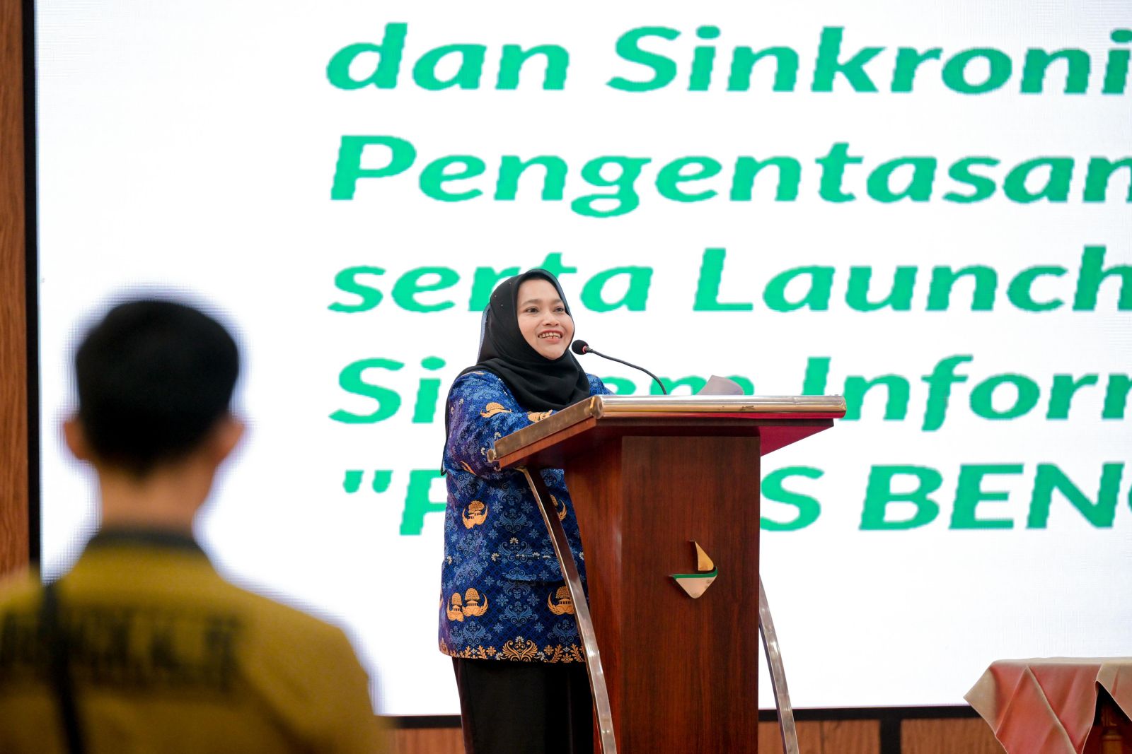 PEKANBARU, PROKOPIM — Bupati Bengkalis, Kasmarni, meresmikan Aplikasi Sistem Informasi POLESS (Poverty Less) Bengkalis pada Forum Kemitraan Multipihak dan Sinkronisasi Program Pusat-Daerah, Senin (17/11/2025).