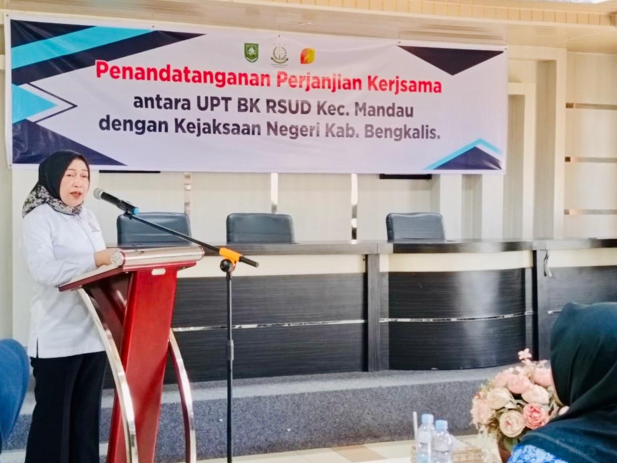 Penandatanganan dilakukan langsung oleh Kepala Kejaksaan Negeri Bengkalis, Nadda Lubis, dan Direktur UPT BK RSUD Kecamatan Mandau, drg. Sylvia Febriani, serta disaksikan oleh Asisten Perekonomian dan Pembangunan, H. Toharuddin, yang mewakili Bupati Bengkalis.