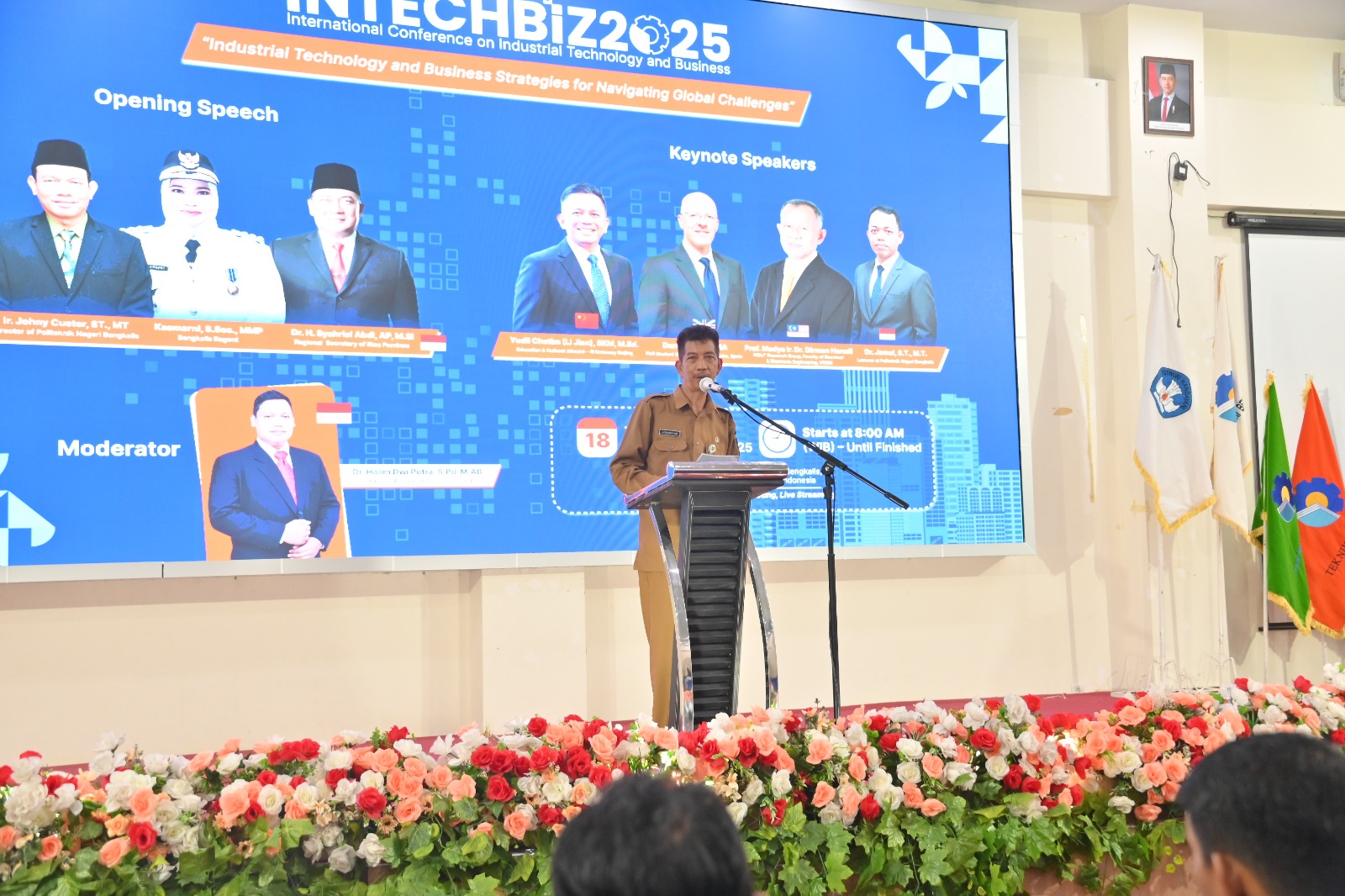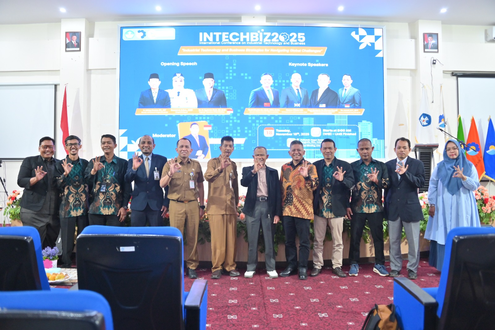 BENGKALIS, PROKOPIM - Bupati Bengkalis, yang diwakili oleh Staf Ahli Bupati Bidang Kemasyarakatan dan Sumber Daya Manusia, Johansyah Syafri, membuka acara International Conference on Industrial Technology (Intechbiz) 2025 di Politeknik Negeri Bengkalis, Selasa (18/11/2025) di Aula Mini Conference GKT 1 Politeknik Negeri Bengkalis.