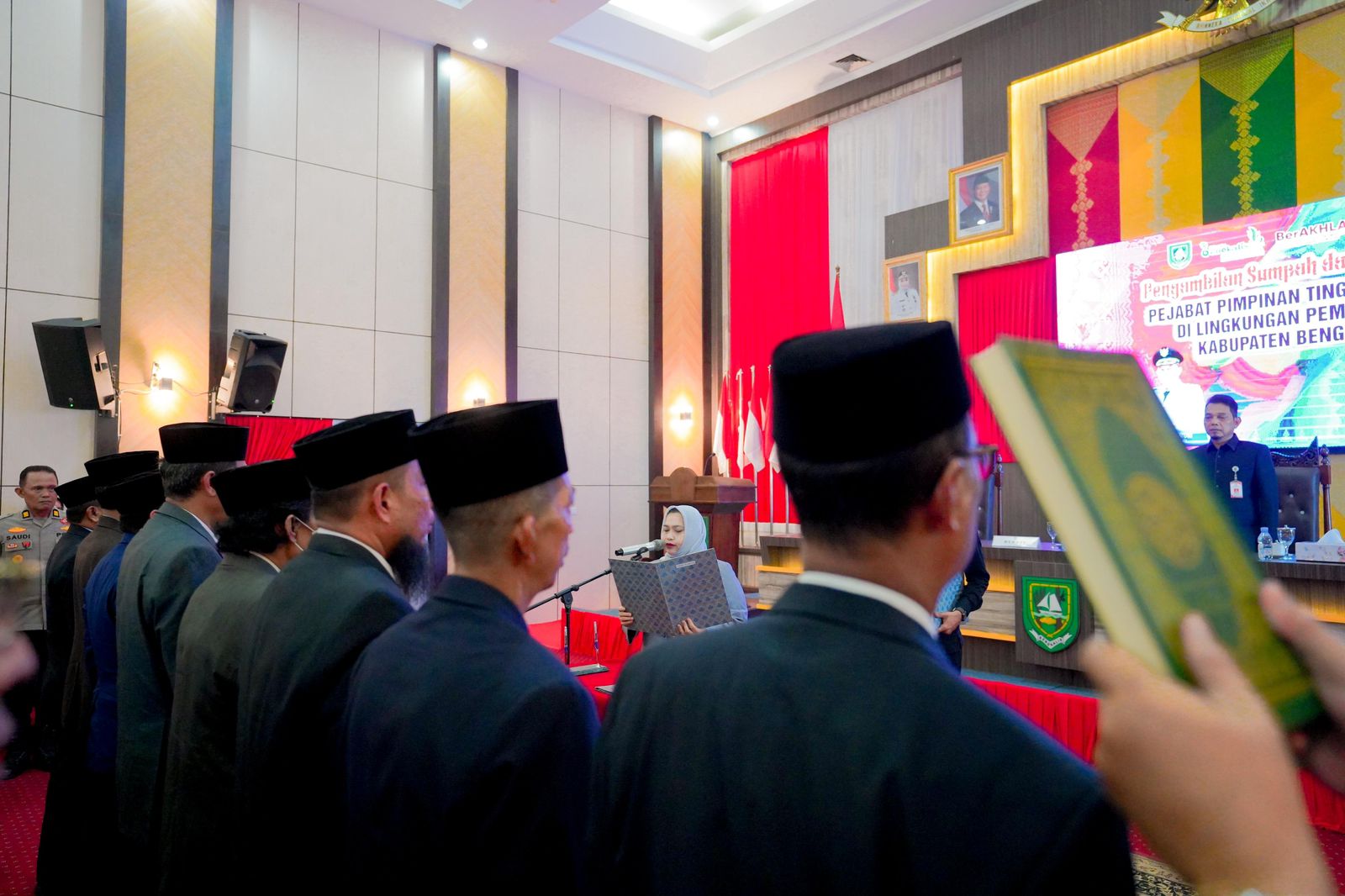 BENGKALIS, PROKOPIM - Bupati Bengkalis Kasmarni melakukan pengambilan sumpah jabatan dan pelantikan Pejabat Pimpinan Tinggi Pratama di lingkungan Pemerintah Kabupaten Bengkalis.