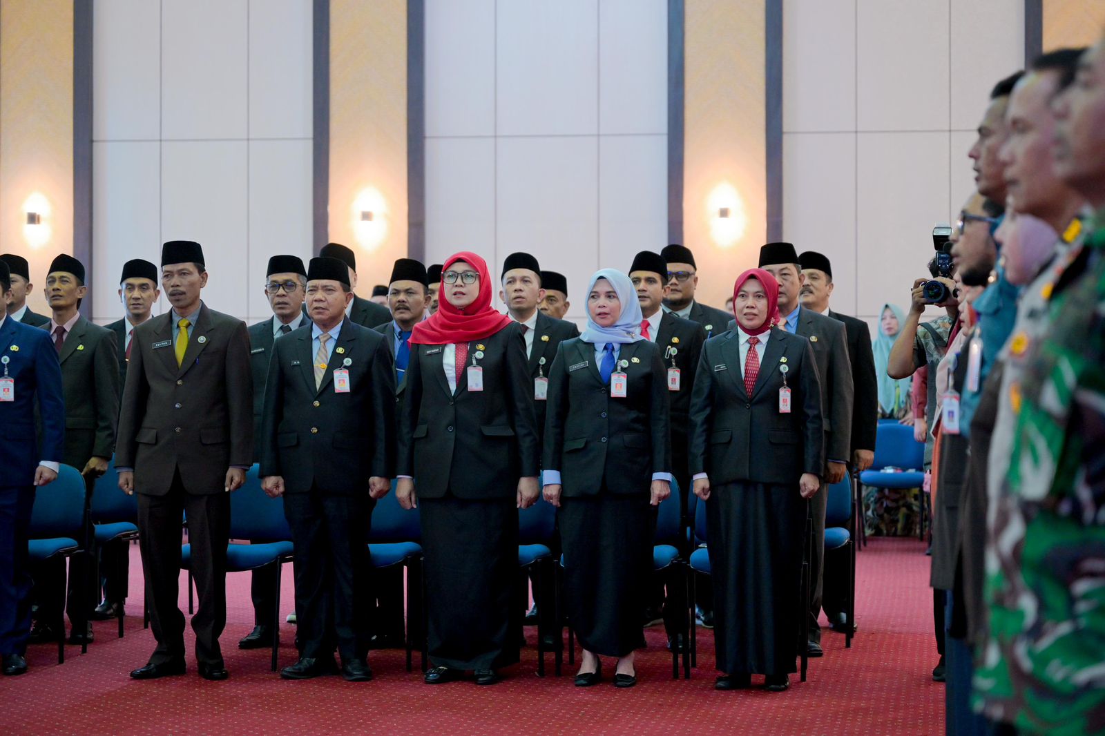 Dia menambahkan, kami minta para pejabat segera menyesuaikan diri, melakukan konsolidasi internal di perangkat daerah, menyusun langkah-langkah percepatan program, dan mengidentifikasi permasalahan yang menghambat pencapaian target kinerja serta mencari solusi alternatif. Prestasi kerja bapak/ibu akan menjadi bahan evaluasi ke depan untuk menentukan apakah akan tetap di jabatan atau perlu keputusan lain.