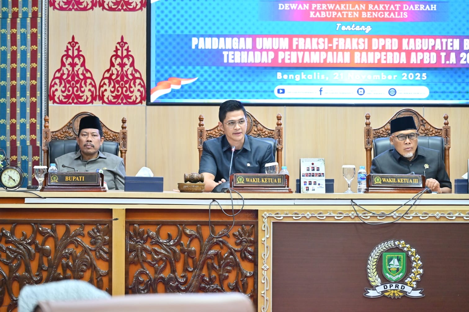 Pada kesempatan ini, seluruh fraksi DPRD Bengkalis menyampaikan pandangan umum yang pada prinsipnya menekankan pentingnya penyusunan APBD 2026 yang cermat, efisien, serta tetap berpihak kepada kepentingan masyarakat.