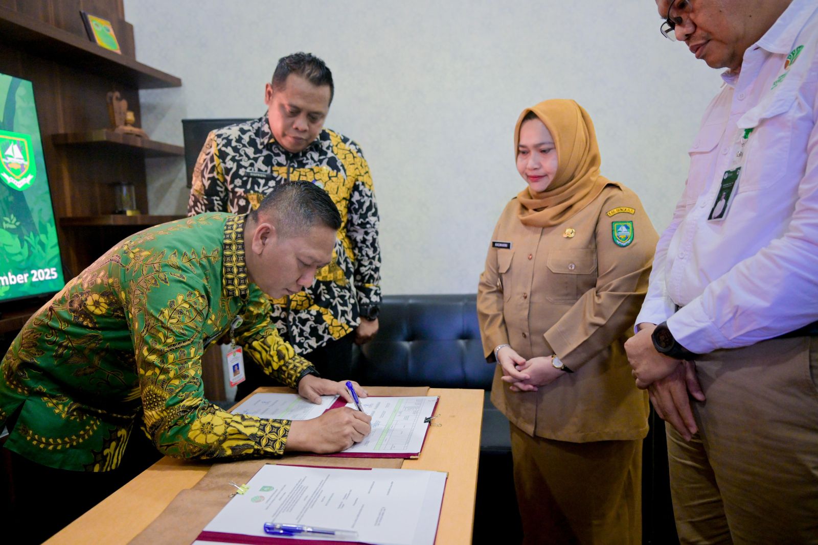 PEKANBARU, PROKOPIM — Bupati Bengkalis Kasmarni menghadiri dan melakukan penandatanganan Rencana Kerja Tahunan (RKT) Tahun 2025 antara Pemerintah Kabupaten Bengkalis dan Balai Besar Konservasi Sumber Daya Alam (BBKSDA) Riau, sebagai kelanjutan kerja sama yang telah terjalin sejak 2023 terkait pemanfaatan dan pengembangan transportasi terbatas di kawasan Suaka Margasatwa Giam Siak Kecil dan Suaka Margasatwa Balai Raja, di Kantor Balai Besar BKSDA Riau, Senin (25/11/2025).