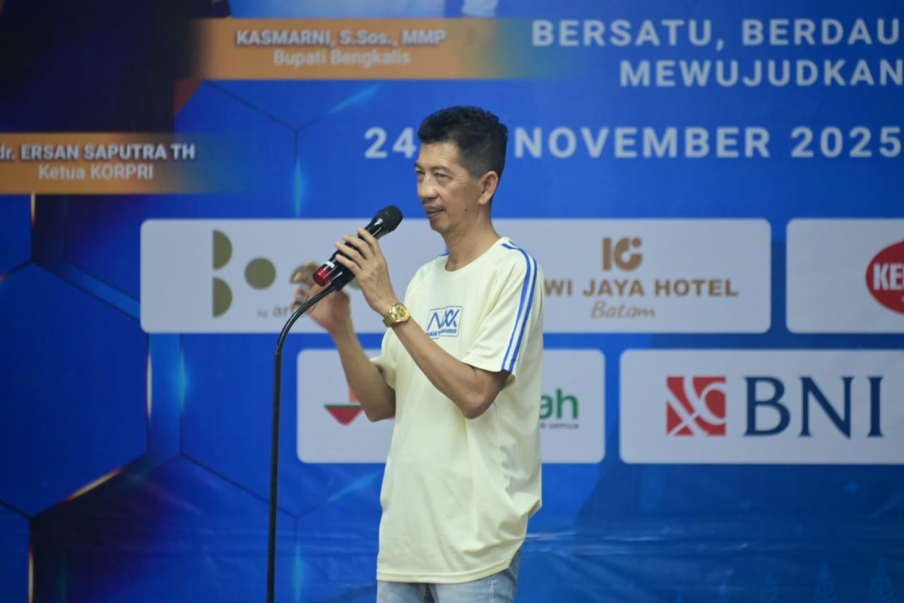 Demikian disampaikan Bupati Bengkalis yang diwakili Staf Ahli Bupati Bidang Kemasyarakatan dan Sumber Daya Manusia (SDM) Johansyah Syafri, dalam pidatonya saat menutup Turnamen Badminton KORPRI Bengkalis CUP VII sempena Hari Ulang Tahun (HUT) KORPRI ke-54 tahun 2025. Kegiatan berlangsung di GOR Rabbit, Gang Bandes Jalan Senayan, Bengkalis, Selasa (30/11/2025) malam.