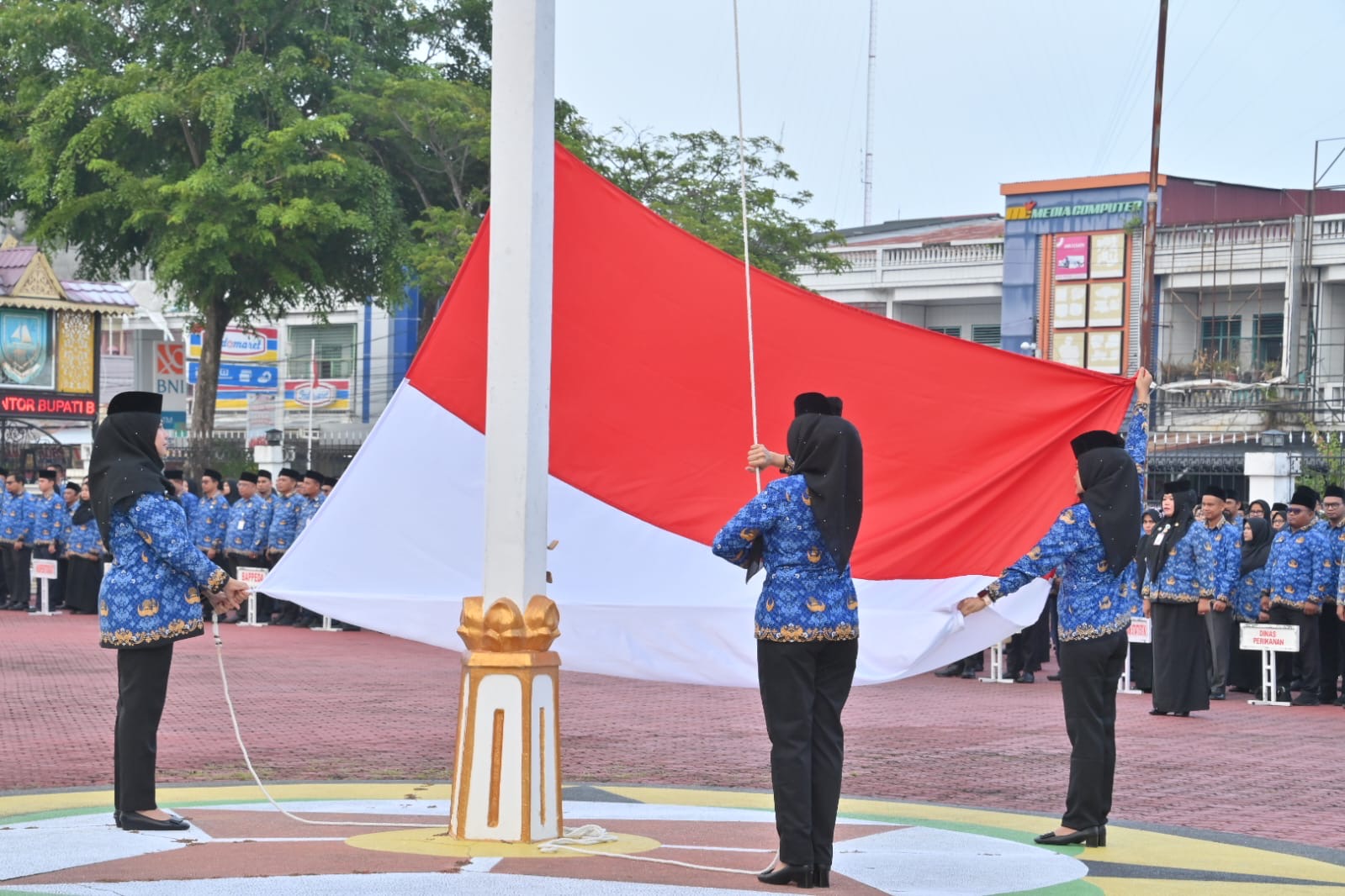 BENGKALIS, PROKOPIM — Pelaksanaan Upacara Hari Ulang Tahun Ke-54 Korps Pegawai Republik Indonesia di Lingkungan Pemerintah Kabupaten Bengkalis terbilang istimewa, karena bertindak sebagai pelaksana upacaranya adalah Srikandi Korpri.