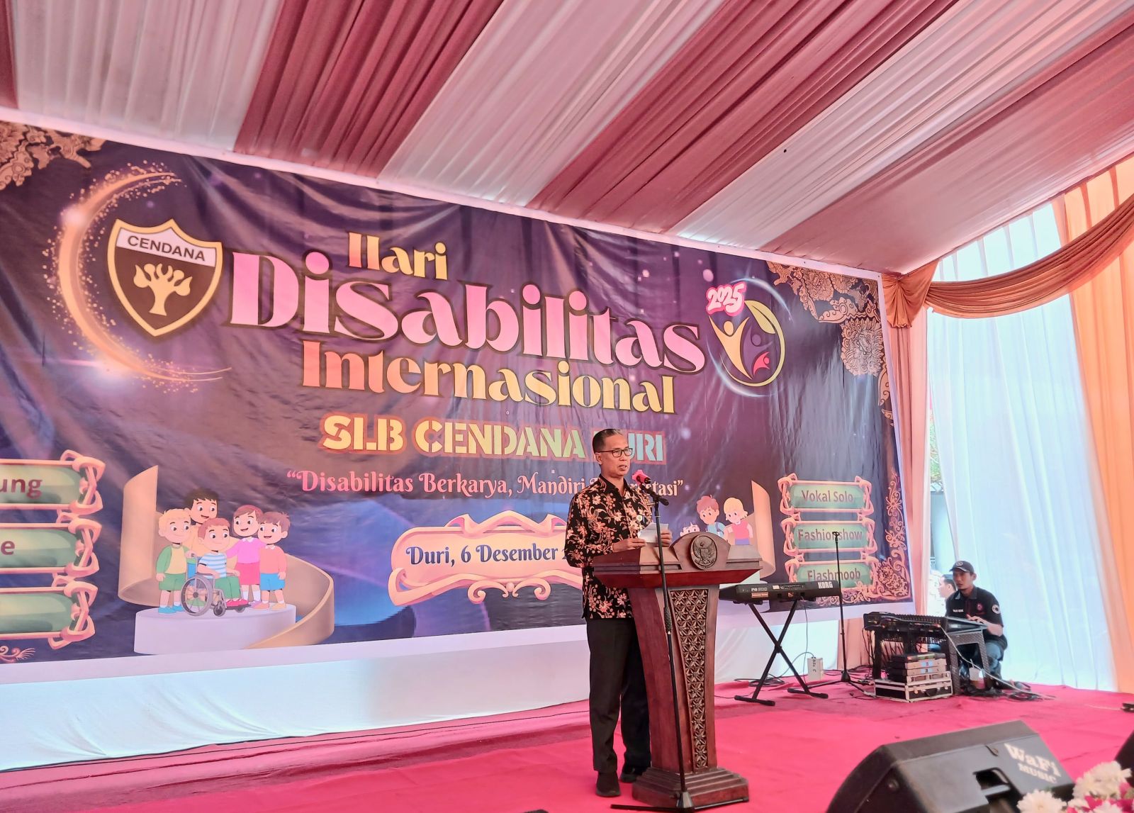 MANDAU, PROKOPIM - Bupati Bengkalis melalui Asisten Ekonomi dan Pembangunan Sekretariat Daerah H. Toharudin menghadiri langsung Peringatan Hari Disabilitas Internasional yang diselenggarakan oleh SLB Cendana Duri, Sabtu (06/12/2025) bertempat di Halaman Mandau City Mall Duri.