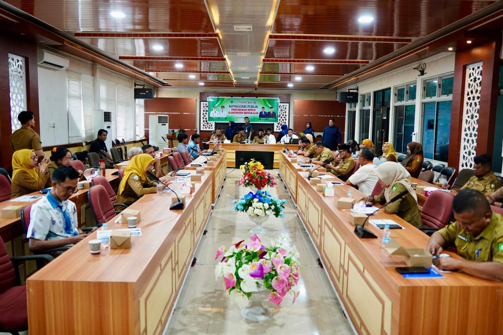BENGKALIS, PROKOPIM - Bupati Bengkalis, diwakili Staf Ahli Bupati Bidang Pemerintahan Hukum dan Politik Andris Wasono, secara resmi membuka acara Konsultasi Publik Rumusan Rencana Perlindungan dan Pengelolaan Lingkungan Hidup (RPPLH) Kabupaten Bengkalis, Selasa (16/12/2025) di Ruang Zahari Bappeda Bengkalis.