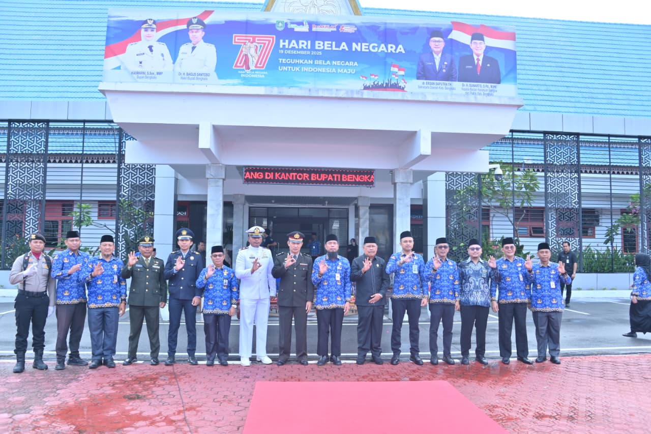 BENGKALIS, PROKOPIM – Pemerintah Kabupaten Bengkalis melaksanakan Upacara Peringatan Hari Bela Negara Ke-77 Tahun 2025, di Halaman Kantor Bupati Bengkalis, Kamis (19/12/2025). Upacara berlangsung khidmat dan diikuti oleh unsur Forkopimda, TNI–Polri, ASN dan pelajar.