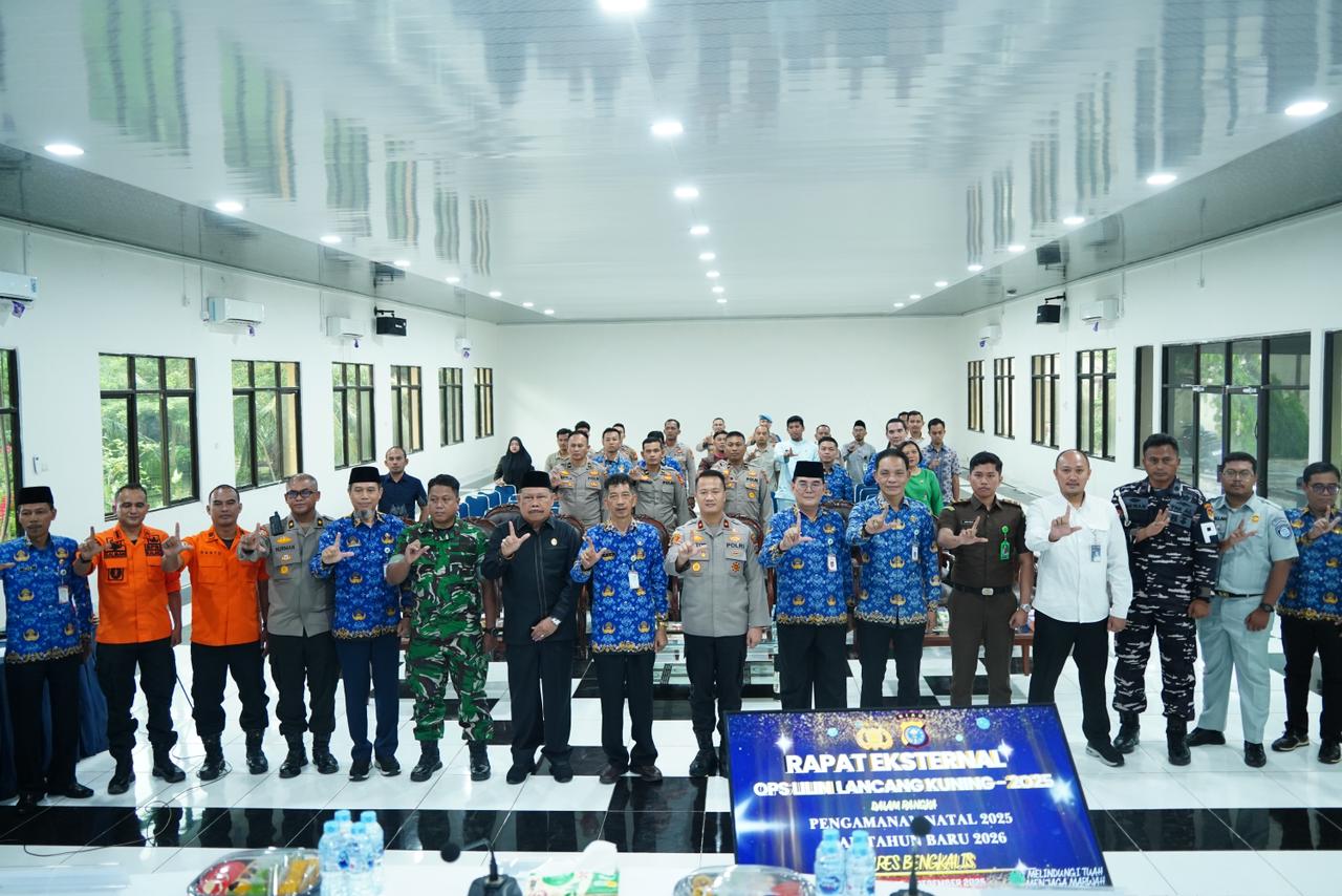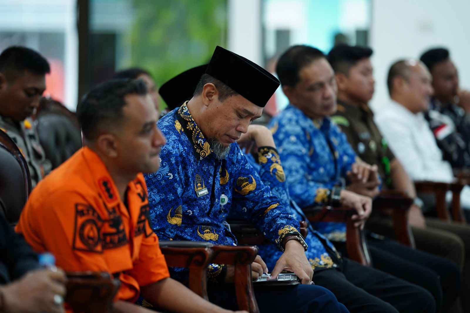 Rapat ini membahas kesiapan seluruh unsur terkait, meliputi pengamanan tempat ibadah, kelancaran lalu lintas, kesiapsiagaan pelayanan kesehatan, mitigasi bencana, serta antisipasi potensi gangguan keamanan dan ketertiban masyarakat.