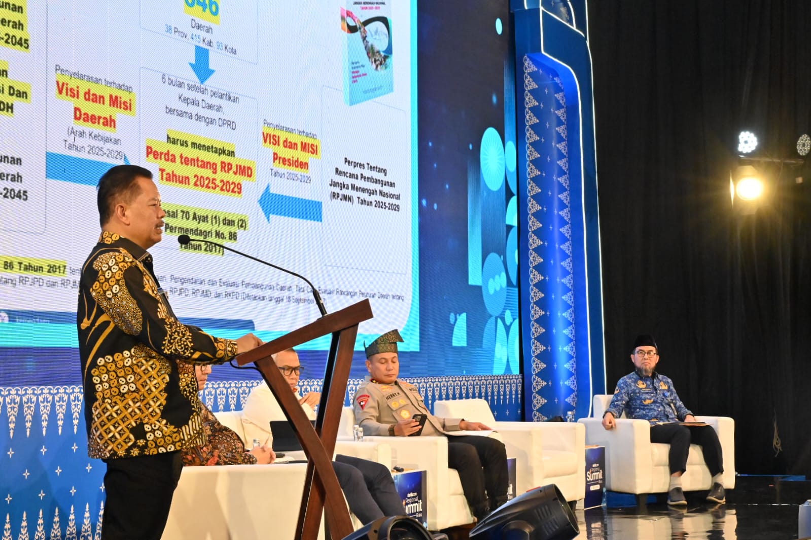 Acara yang dihadiri para kepala daerah, Forkopimda Riau, akademisi, pelaku usaha, serta pemangku kepentingan nasional itu diawali dengan diskusi strategis yang menghadirkan Menteri Dalam Negeri yang diwakili Kepala BPSDM Kementerian Dalam Negeri Sugeng Hariyono, Kapolda Riau Irjen Pol. Herry Heryawan, Wakil Ketua Dewan Komisioner LPS Farid Ashar Nasution, serta Kepala Bappeda Provinsi Riau Purnama Irawansyah.