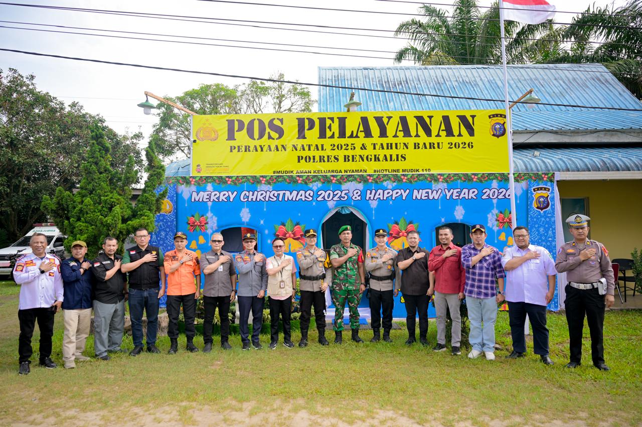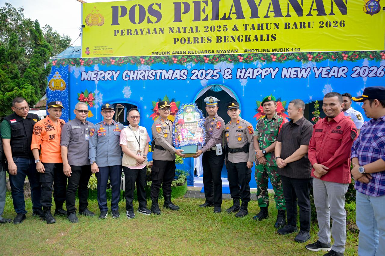 “Kunjungan ini saya lakukan mewakili Bupati Bengkalis sebagai bentuk perhatian dan komitmen Pemerintah Kabupaten Bengkalis dalam memastikan pengamanan Natal dan Tahun Baru 2026 berjalan aman, tertib, dan lancar, serta pelayanan kepada masyarakat dapat berjalan optimal,” ujar Sekda Bengkalis.