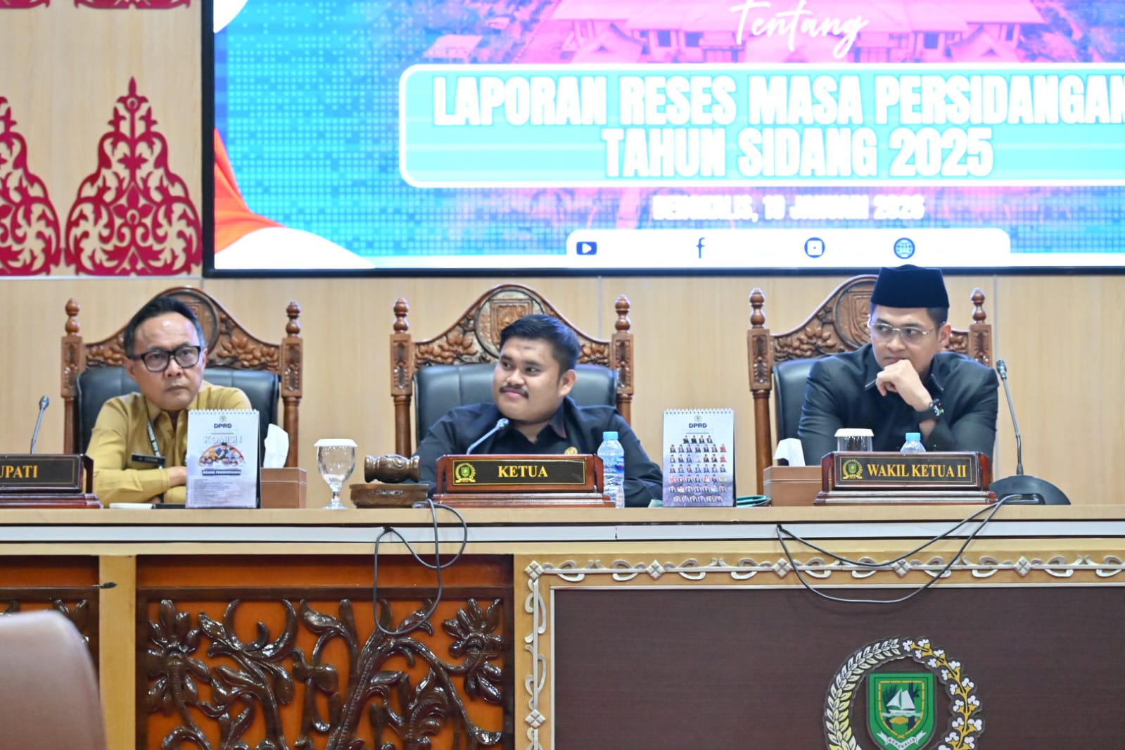 Mewakili Bupati Bengkalis, dr. Ersan Saputra menyampaikan apresiasi kepada seluruh anggota DPRD atas pelaksanaan reses yang telah berjalan dengan baik. Ia menegaskan bahwa aspirasi masyarakat yang dihimpun melalui reses sangat penting sebagai bahan masukan bagi Pemerintah Kabupaten Bengkalis.