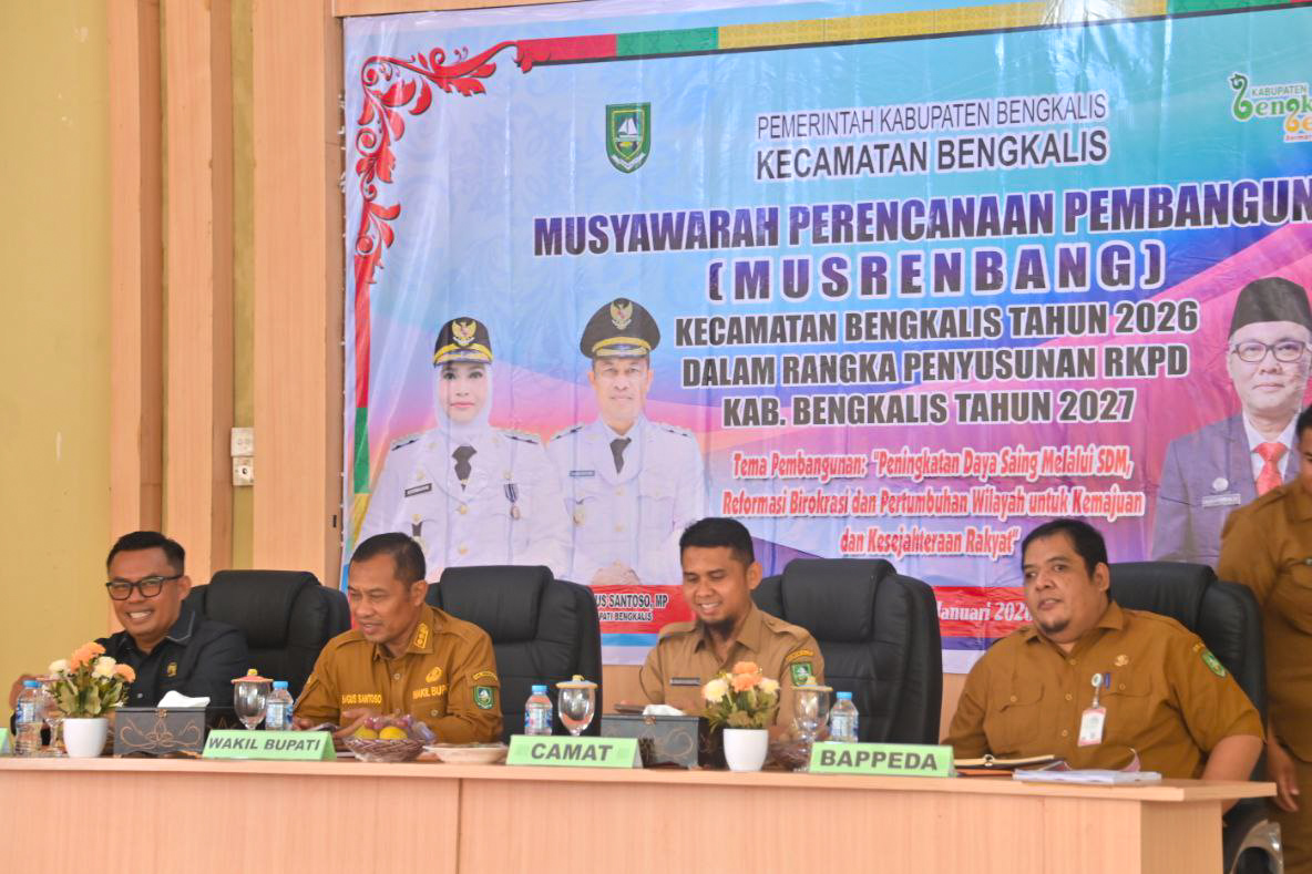 BENGKALIS, PROKOPIM – Wakil Bupati Bengkalis H. Bagus Santoso secara resmi membuka Musyawarah Perencanaan Pembangunan (Musrenbang) Kecamatan Bengkalis Tahun Perencanaan 2027, yang digelar di Kantor Camat Bengkalis, Senin (26/1/2026).