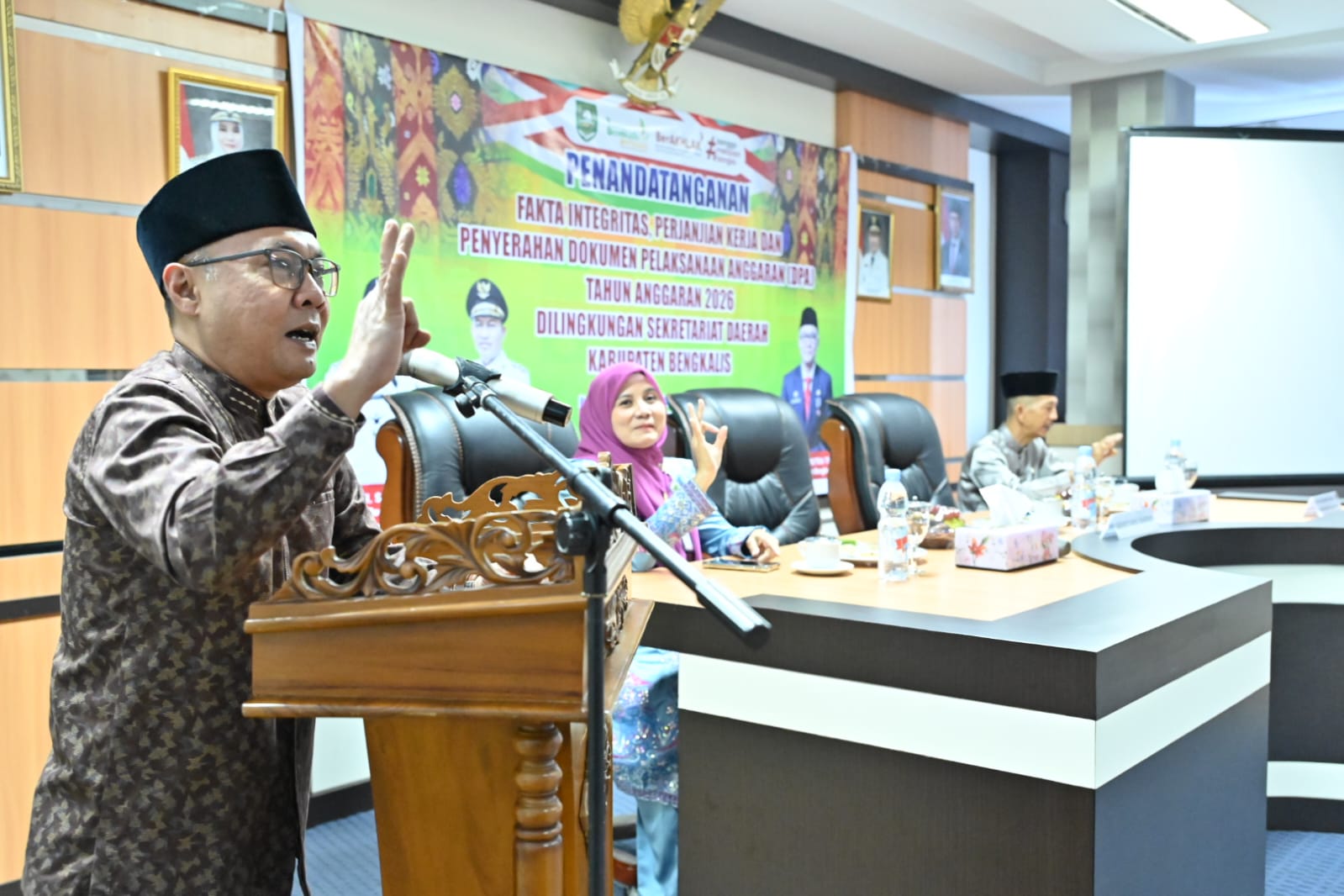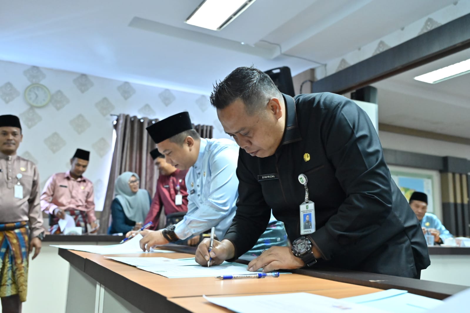 Dalam sambutannya, Sekretaris Daerah dr. Ersan Saputra, TH menegaskan bahwa Pakta Integritas dan Perjanjian Kinerja bukan sekadar formalitas administratif, melainkan menjadi landasan moral dan komitmen nyata dalam meningkatkan kinerja birokrasi yang bersih, berintegritas, dan berorientasi pada hasil.