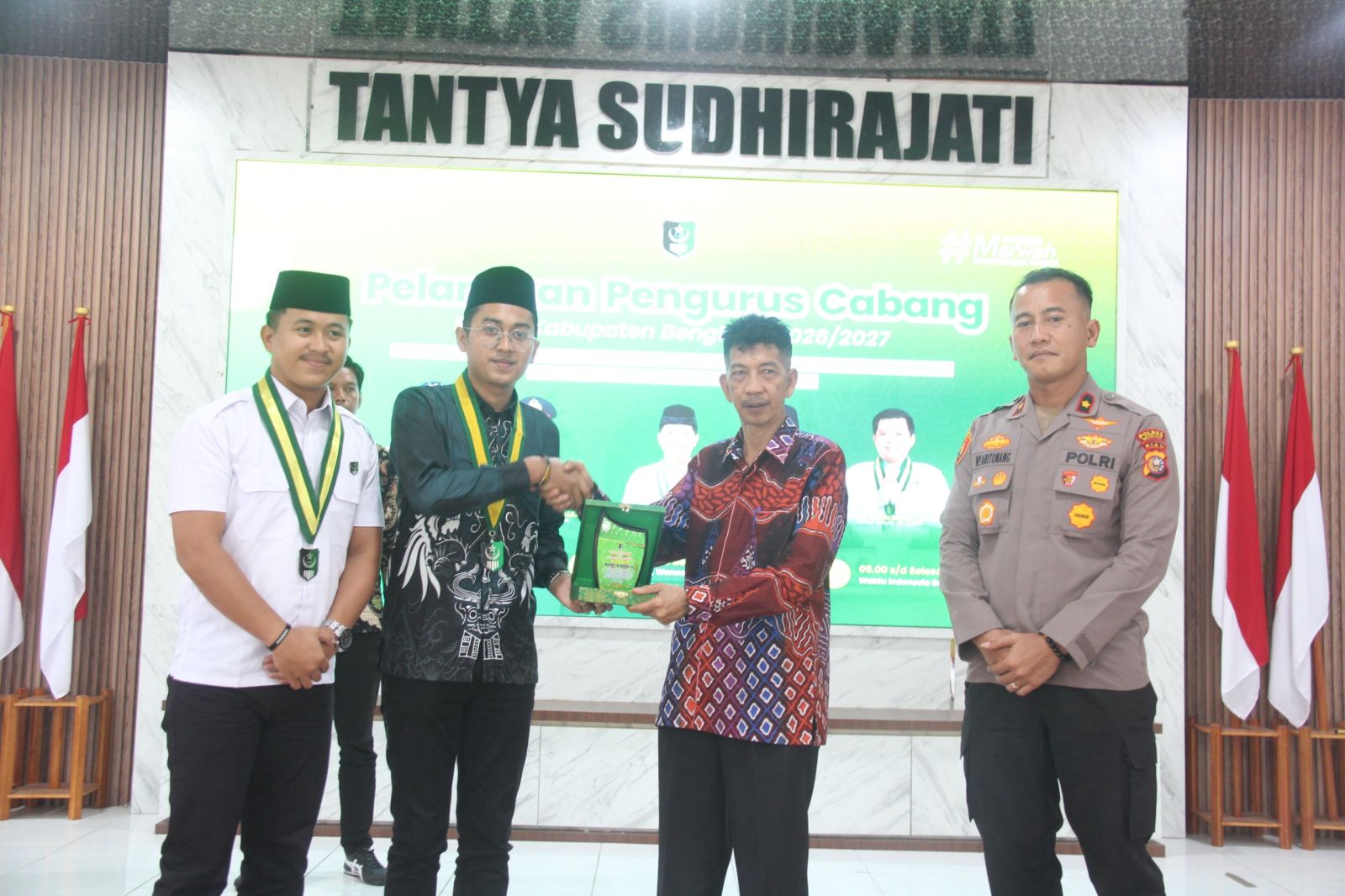 BENGKALIS, PROKOPIM – Bupati Bengkalis, Kasmarni diwakili Staf Ahli Bupati Bidang Kemasyarakatan dan Sumber Daya Manusia Johansyah Syafri menghadiri acqra Pelantikan 40 Pengurus Cabang Serikat Mahasiswa Muslimin Indonesia (SEMMI) Cabang Bengkalis Periode 2026–2027, di ruang rapat Tantya Sudhirajati Polres Bengkalis, Sabtu (14/2/2026) siang.