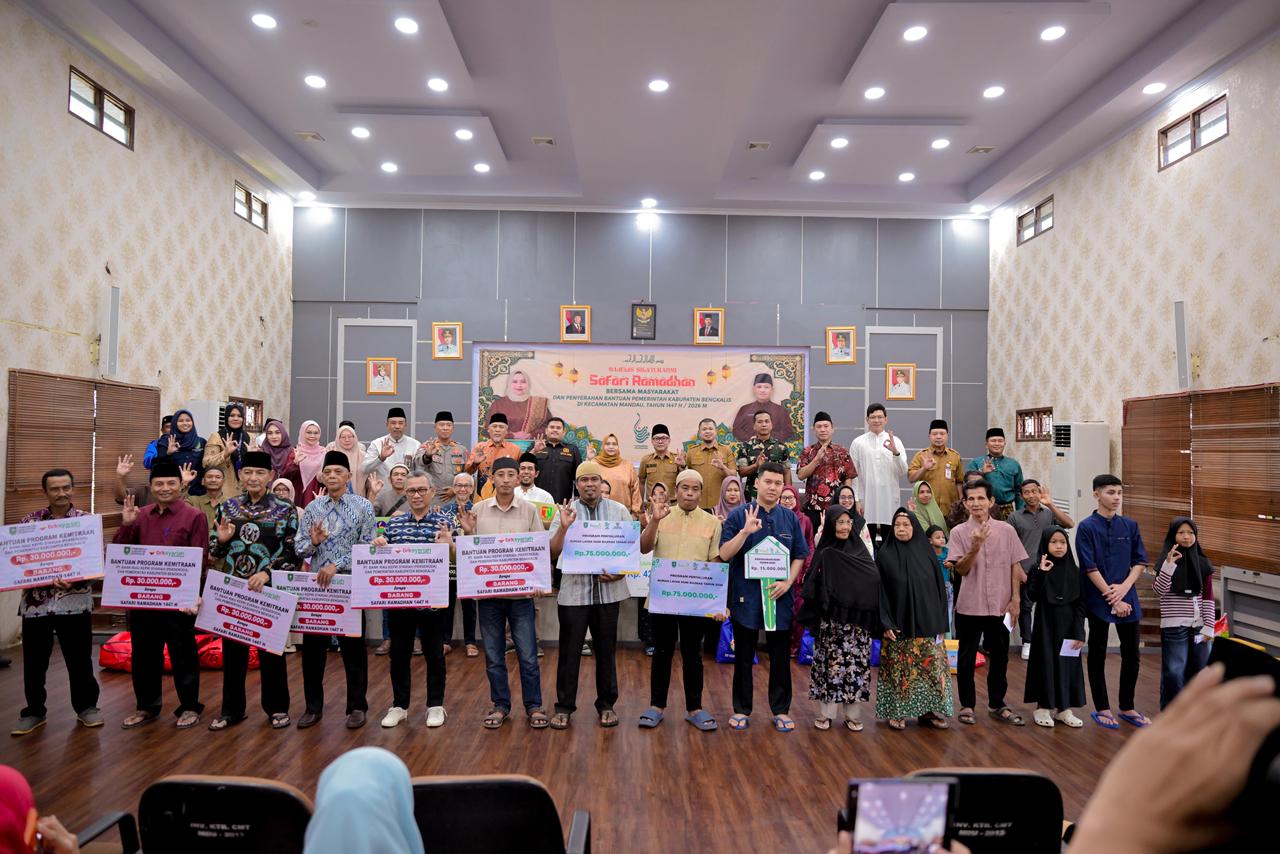 Dalam rangkaian penutupan Safari Ramadhan tersebut, Bupati Bengkalis juga menyerahkan sejumlah bantuan sebagai bentuk kepedulian pemerintah daerah kepada masyarakat. Melalui dukungan CSR Bank Riau Kepri Syariah, bantuan disalurkan kepada enam rumah ibadah. Selanjutnya, diserahkan empat unit Rumah Layak Huni dari BAZNAS, santunan kepada 30 orang dhuafa dan 25 anak yatim, tiga paket sembako dari Dinas Sosial, serta tiga paket tambahan dari Dharma Wanita Persatuan Kabupaten Bengkalis.