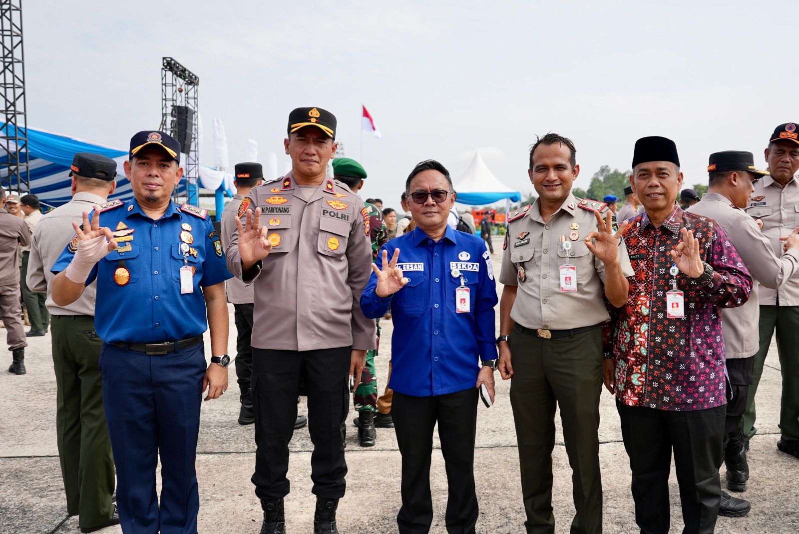 Hadir juga bersama Bupati Bengkalis, Dandim 0303 Bengkalis Letkol Inf Haris Nur Priatno, Wakapolres Bengkalis Kompol Noak Pembina Aritonang, Kadis Kominfotik Agus Sofyan, Kasatpol PP Alfakhrurrazy, Kepala BPBD Salman Alfarisi, dan Plt. Kadis Damkar M Fendro Arrasyid.