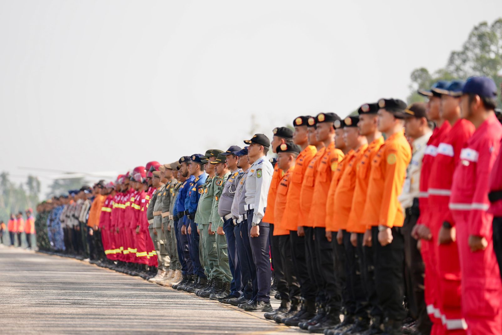 Apel dipimpin langsung oleh Menteri Koordinator Bidang Politik dan Keamanan Jendral TNI (Purn) Djamari Chaniago, didampingi Kepala Badan Nasional Penanggulangan Bencana (BNPB) Letjen TNI Suharyanto serta Menteri Kehutanan Raja Juli Antoni. Kegiatan diawali dengan pengecekan pasukan dan peralatan, kemudian dilanjutkan dengan peninjauan barisan personel dari berbagai institusi seperti TNI, Polri, BPBD, Basarnas, Manggala Agni, Satpol PP, Dinas Perhubungan, hingga perwakilan perusahaan.