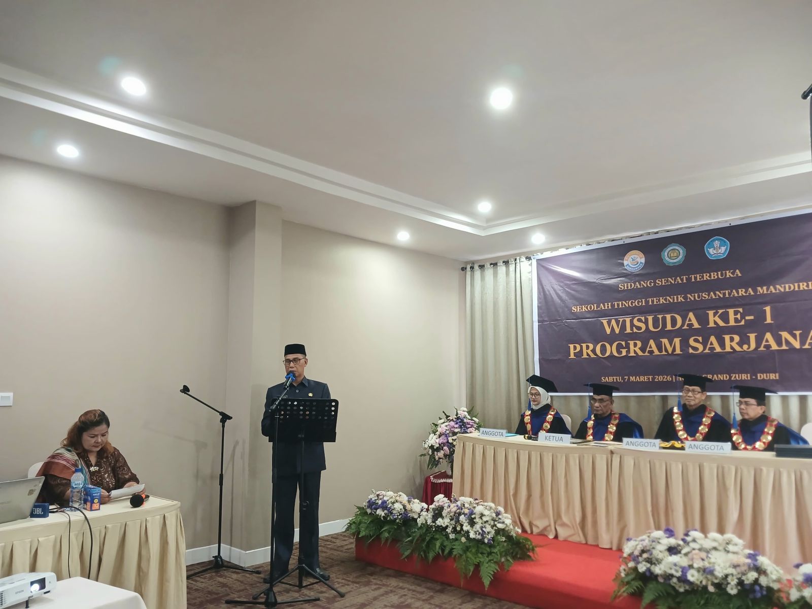 DURI, PROKOPIM - Bupati Bengkalis melalui Asisten Perekonomian dan Pembangunan Sekretariat Daerah Kabupaten Bengkalis H. Toharudin menghadiri kegiatan Wisuda Sarjana Angkatan I Tahun 2026 Sekolah Tinggi Teknik (STT) Nusantara Mandiri yang berlangsung khidmat dan penuh kebanggaan. Bertempat di Grand Zuri Hotel Mandau, Sabtu (07/03/2026) sore.
