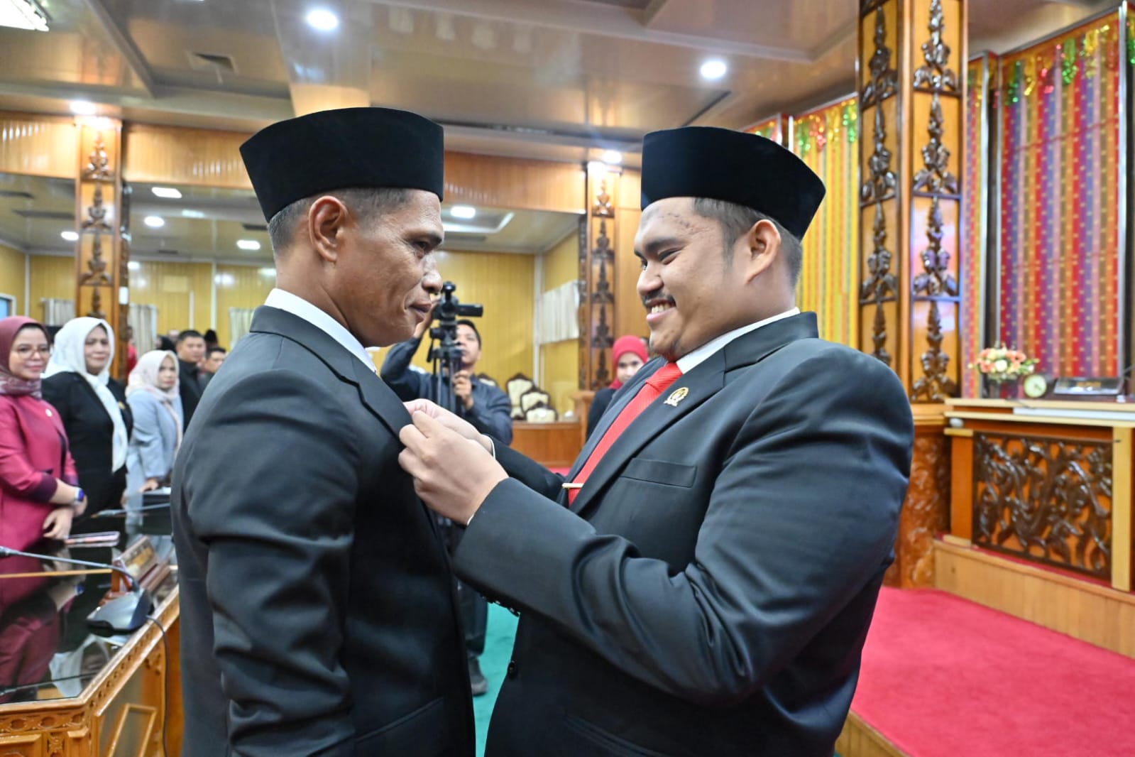 Mewakili Bupati Bengkalis, Sekretaris Daerah Kabupaten Bengkalis dr. Ersan Saputra memberikan ucapan selamat kepada Sahat yang telah resmi dilantik sebagai Anggota DPRD Kabupaten Bengkalis melalui mekanisme PAW.
