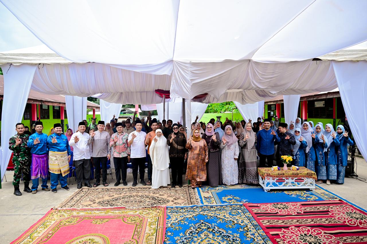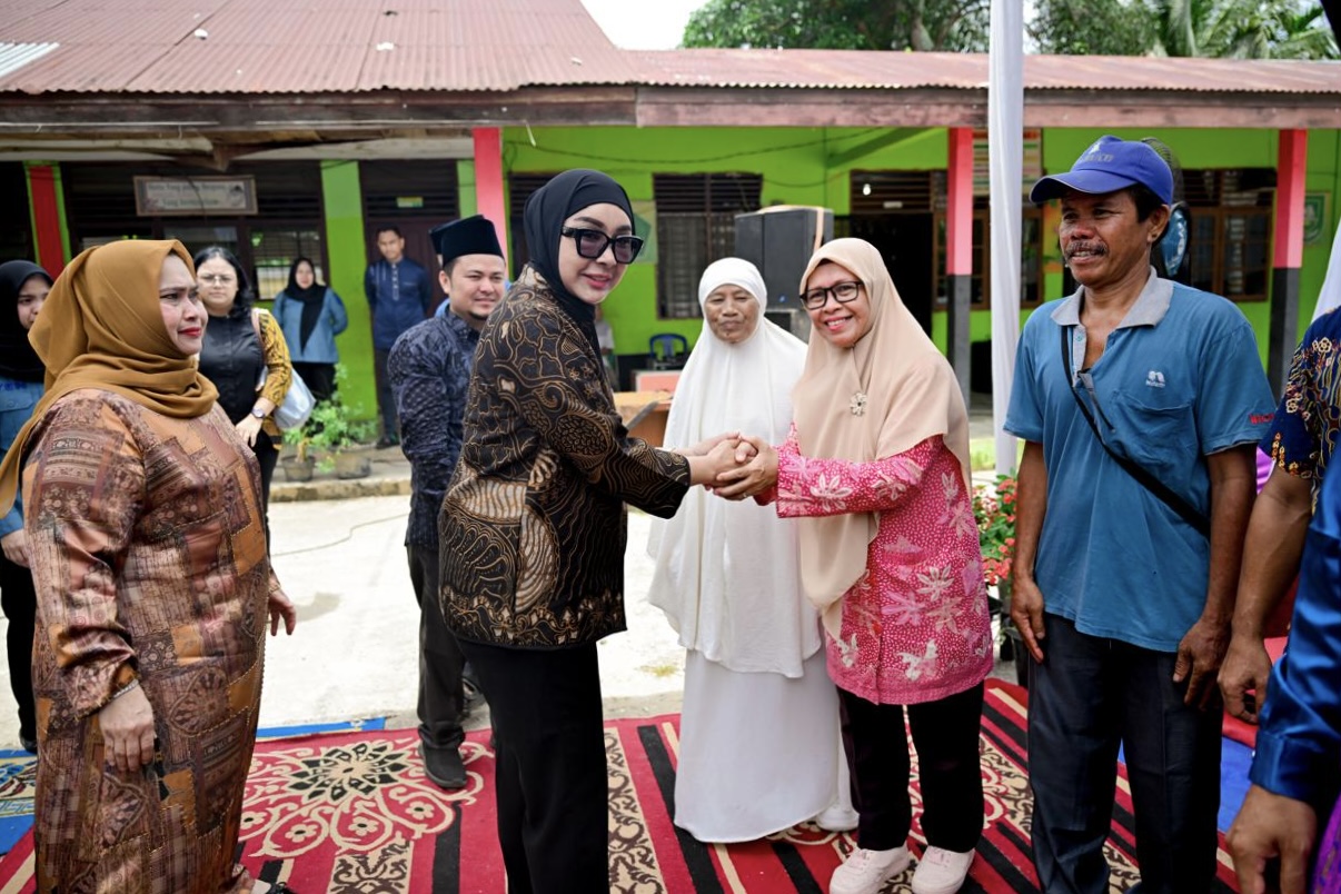 PINGGIR, PROKOPIM – Bupati Bengkalis, Kasmarni, mendampingi Anggota DPR RI, Dewi Juliani, dalam kegiatan penyerahan bantuan sembako melalui program Corporate Social Responsibility (CSR) bersama Bank Rakyat Indonesia kepada Yayasan Pendidikan Islam Pondok Pesantren Almuhajirin, di Desa Muara Basung Kecamatan Pinggir, Sabtu (14/3/2026).