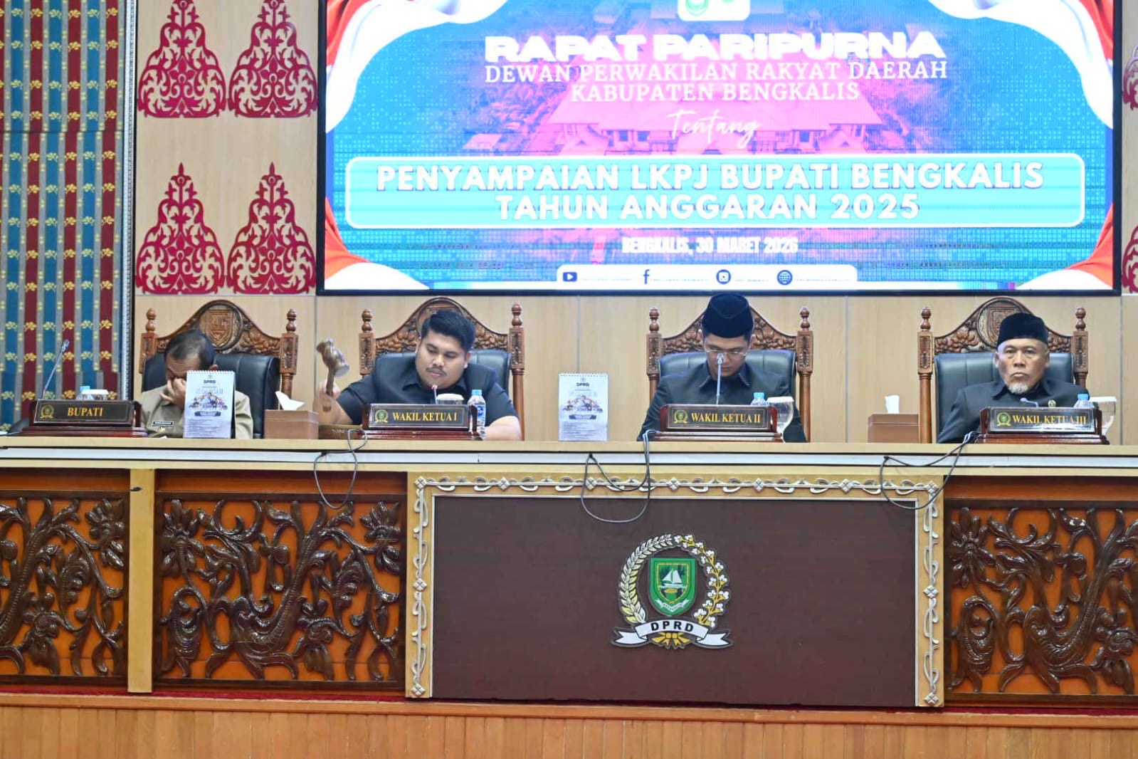 Rapat paripurna yang berlangsung di Ruang Rapat DPRD Bengkalis tersebut dipimpin Wakil Ketua I DPRD Bengkalis M. Arsya Fadilah, didampingi Wakil Ketua II Hendrik Firnanda dan Wakil Ketua III H. Misno, serta dihadiri 22 anggota DPRD dan pejabat di jajaran Pemerintah Kabupaten Bengkalis.