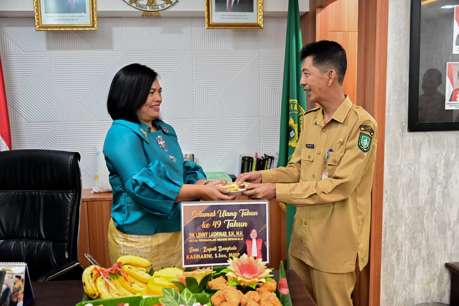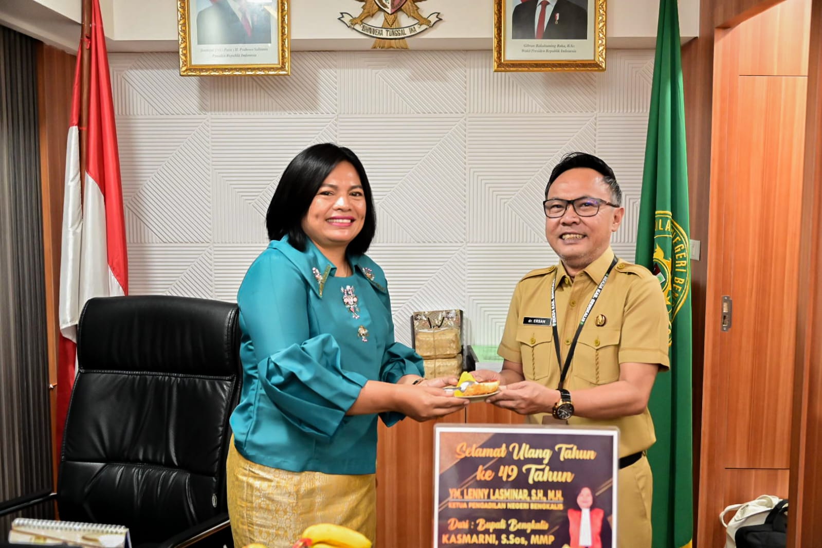 BENGKALIS, PROKOPIM – Bupati Bengkalis Kasmarni menyampaikan ucapan selamat ulang tahun Ke-49 kepada Ketua Pengadilan Negeri Bengkalis, Lenny Lasminar, Selasa, 7 April 2026.