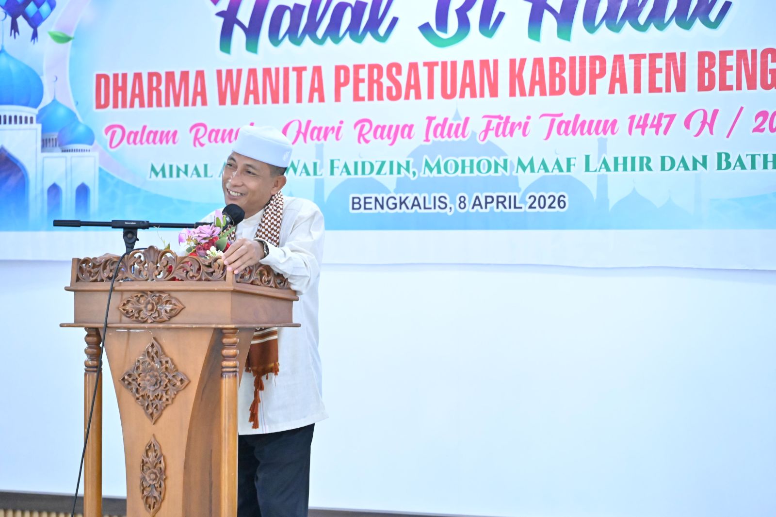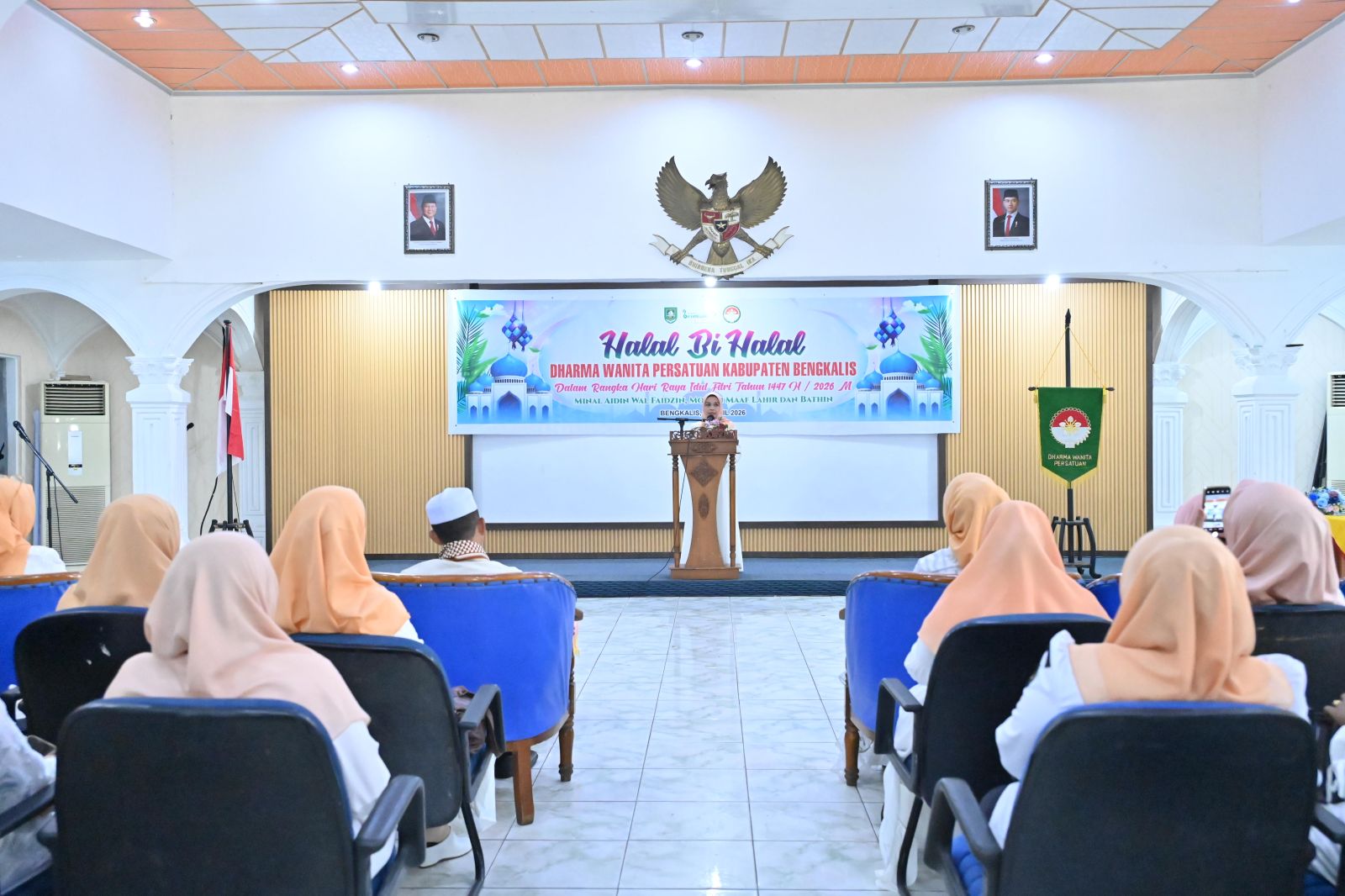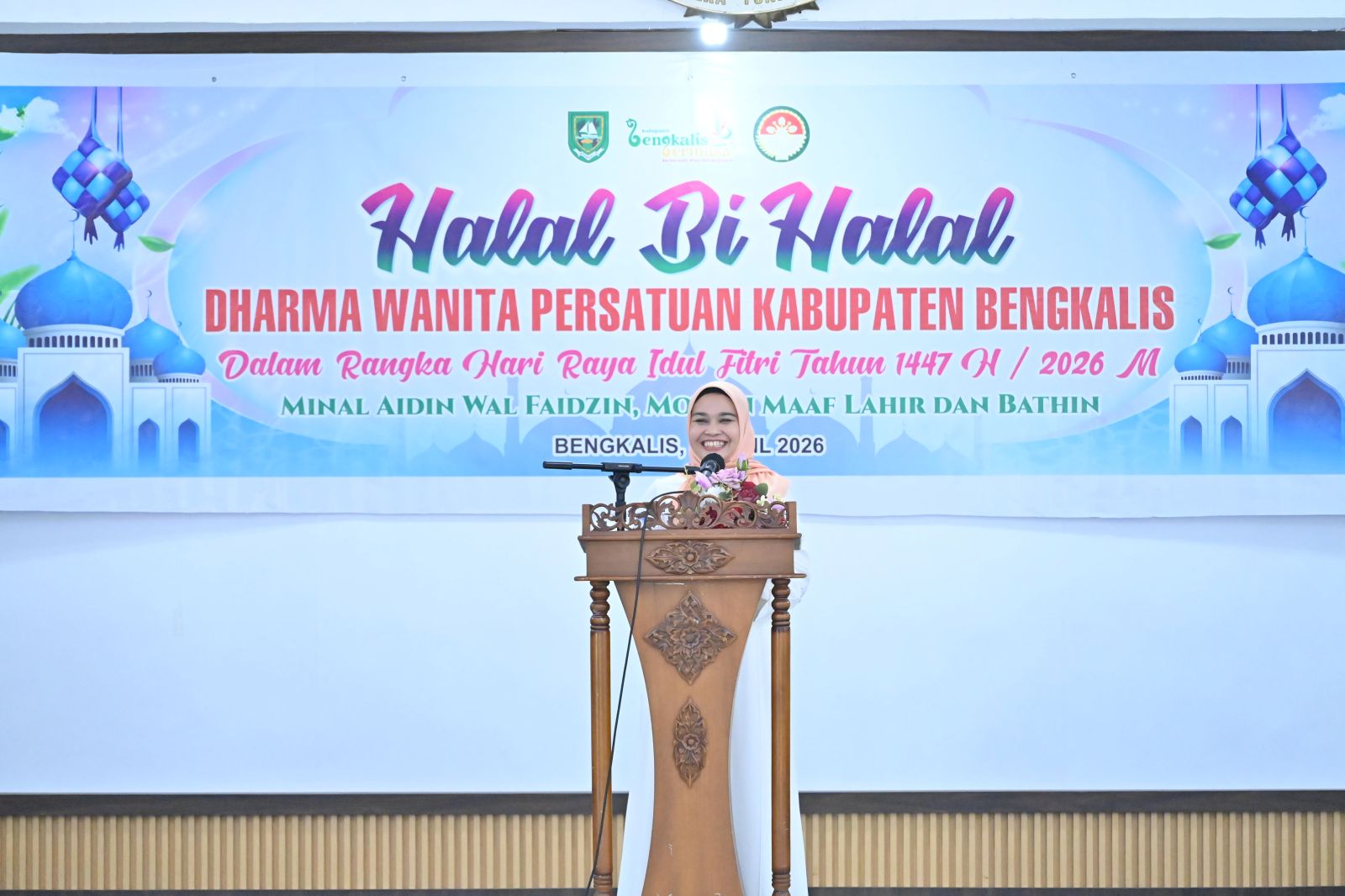BENGKALIS, PROKOPIM – Pasca Hari Raya Idulfitri 1447 H/2026 M, Dharma Wanita Persatuan (DWP) Kabupaten Bengkalis melaksanakan kegiatan Halal Bihalal sekaligus pertemuan bulanan yang berlangsung di Gedung Daerah Datuk Laksamana Raja Dilaut Bengkalis, Rabu (08/04/2026).