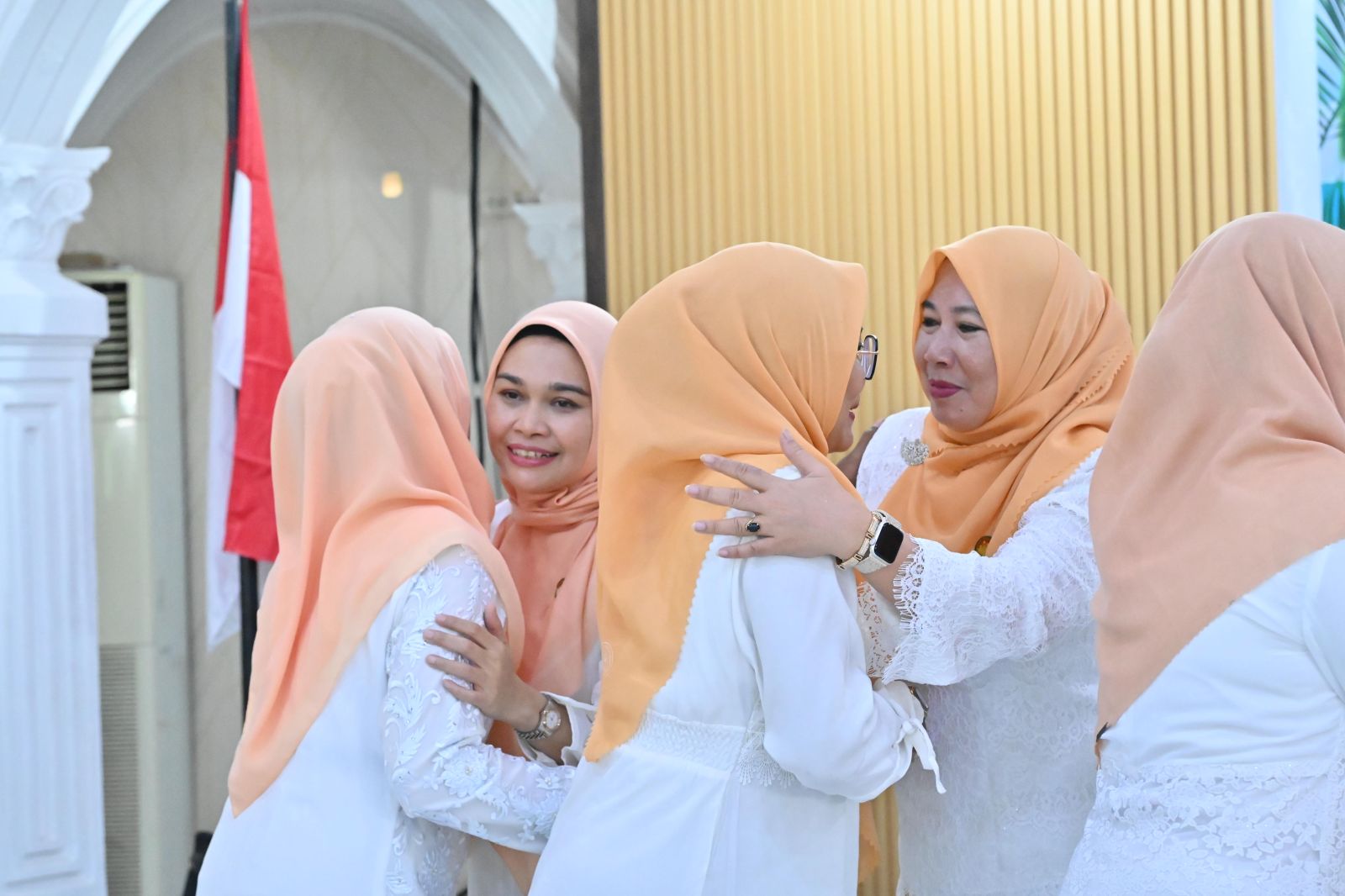 Acara Halal Bihalal diakhiri dengan suasana penuh kehangatan melalui prosesi bersalam-salaman sebagai simbol saling memaafkan, kemudian dilanjutkan dengan sesi foto bersama guna mengabadikan momen kebersamaan dan mempererat tali silaturahmi antar ketua, anggota dan pengurus DWP Kabupaten Bengkalis serta penyebutan nomor undian arisan yang menambah semarak dan kebahagiaan.