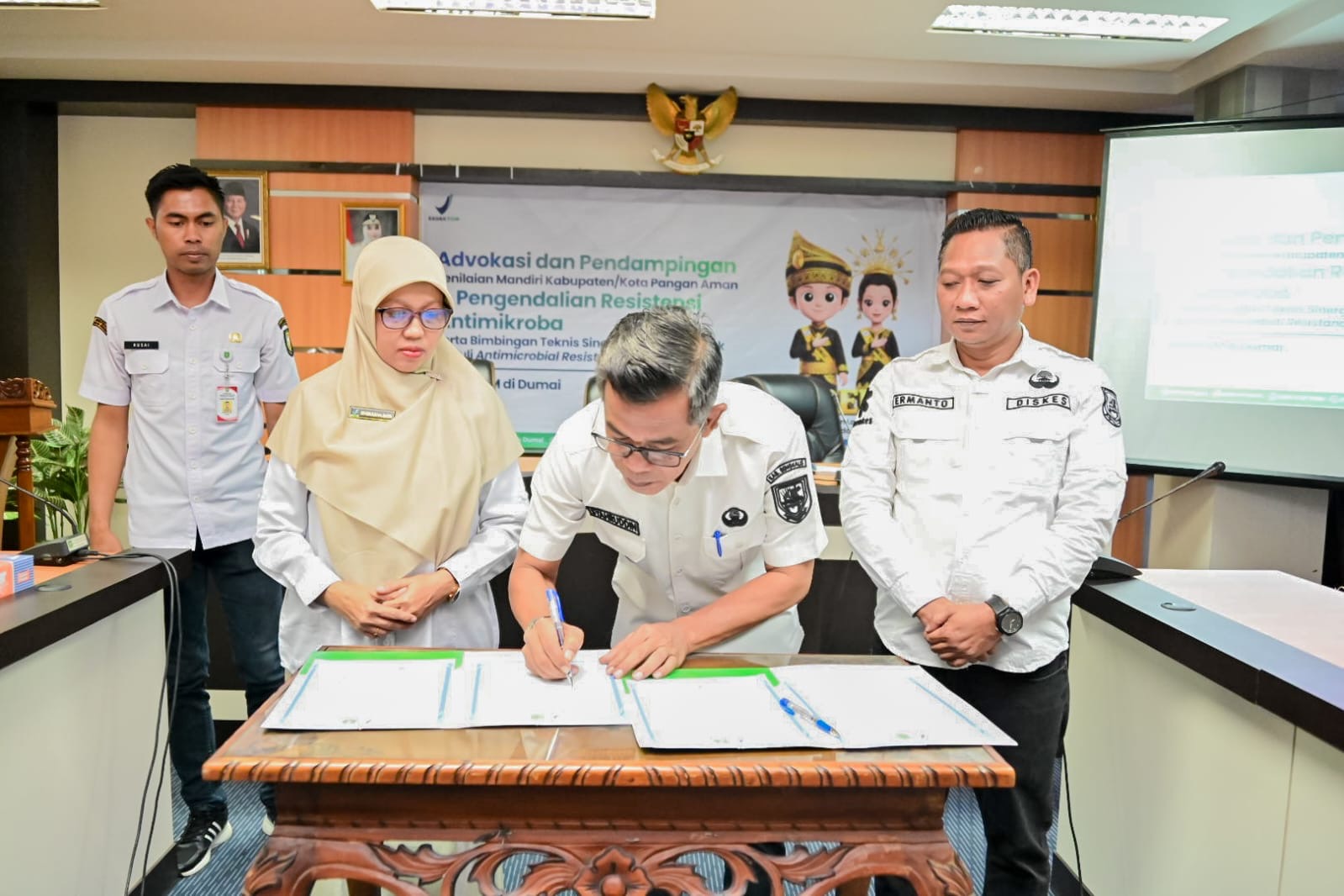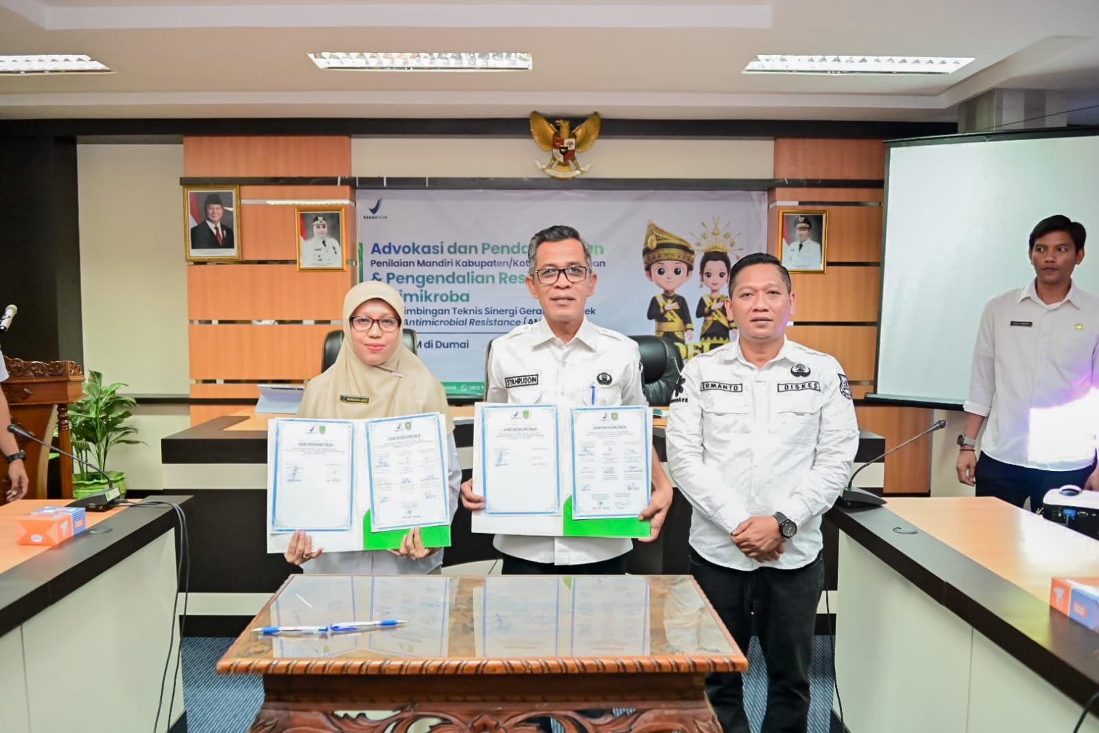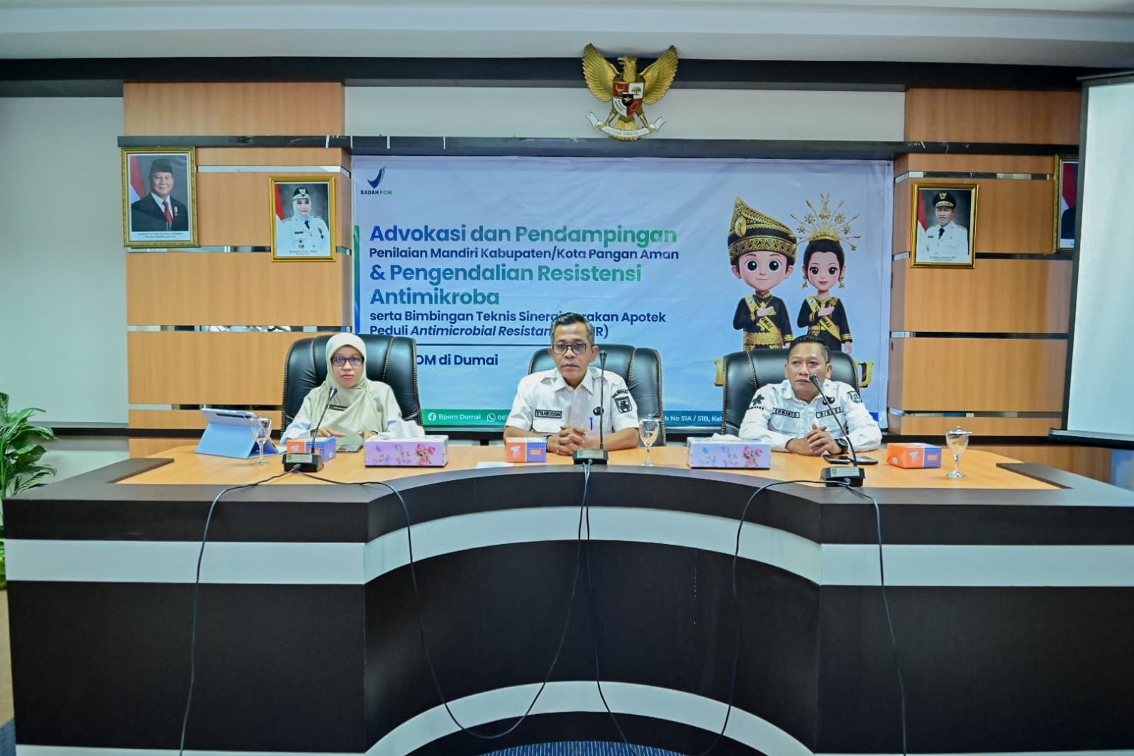 BENGKALIS, PROKOPIM – Pemerintah Kabupaten (Pemkab) Bengkalis terus memperkuat komitmen dalam menjamin keamanan konsumsi masyarakat melalui program Kabupaten/Kota Pangan Aman. Langkah ini diwujudkan lewat kegiatan Advokasi dan Pendampingan Penilaian Mandiri serta Pengendalian Resistensi Antimikroba yang digelar bersama Balai POM di Dumai, Rabu (22/04/2026).