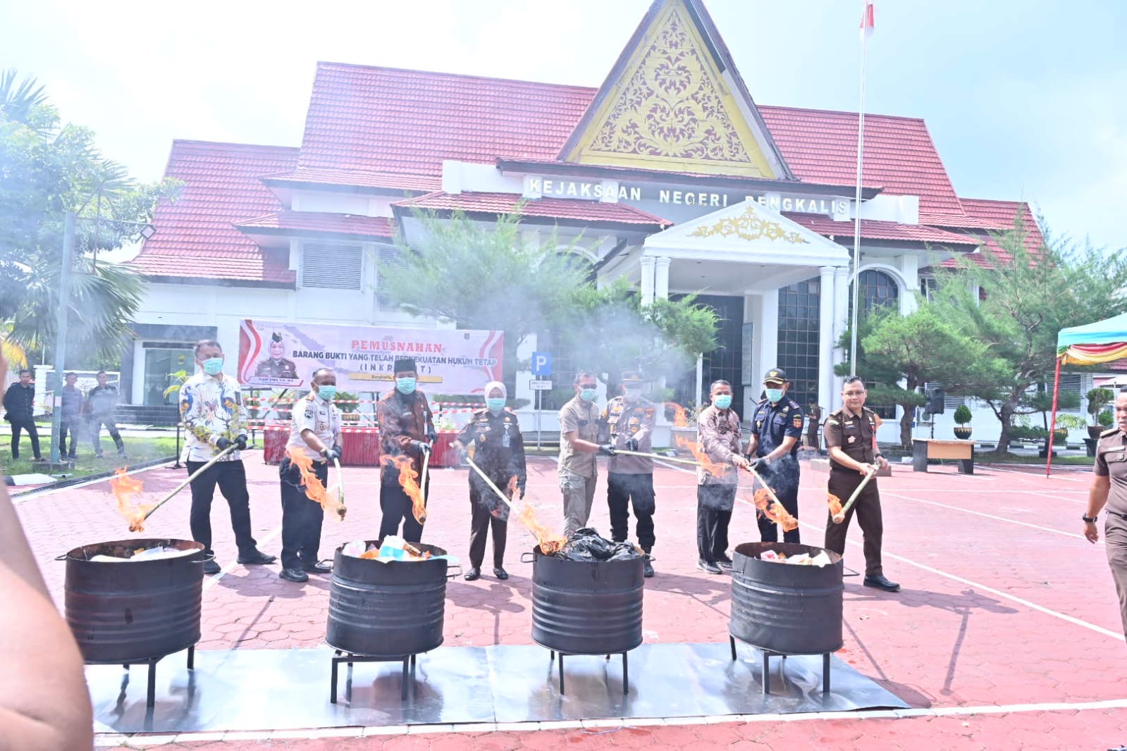 Pemusnahan tersebut dihadiri Bupati Bengkalis diwakili Staf Ahli Bupati Bidang Pemerintahan, Hukum, dan Politik, Andris Wasono, serta jajaran unsur Forkopimda dan instansi terkait.