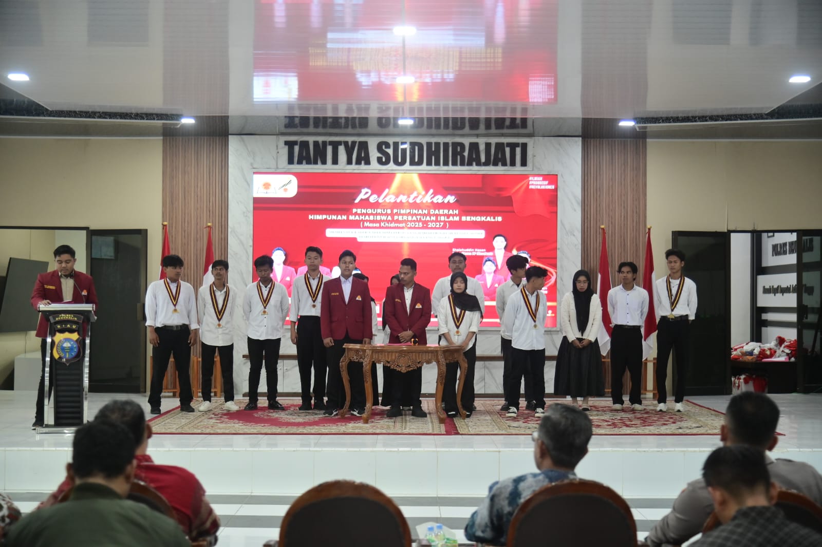 Acara pelantikan yang berlangsung di Aula Tantya Sudhirajati Polres Bengkalis pada Kamis (23/4/2026) pagi tersebut mengukuhkan 15 pengurus baru. Prosesi pelantikan dipimpin langsung oleh Ketua Umum PW Hima Persis Riau, Fikri Abdurahman.