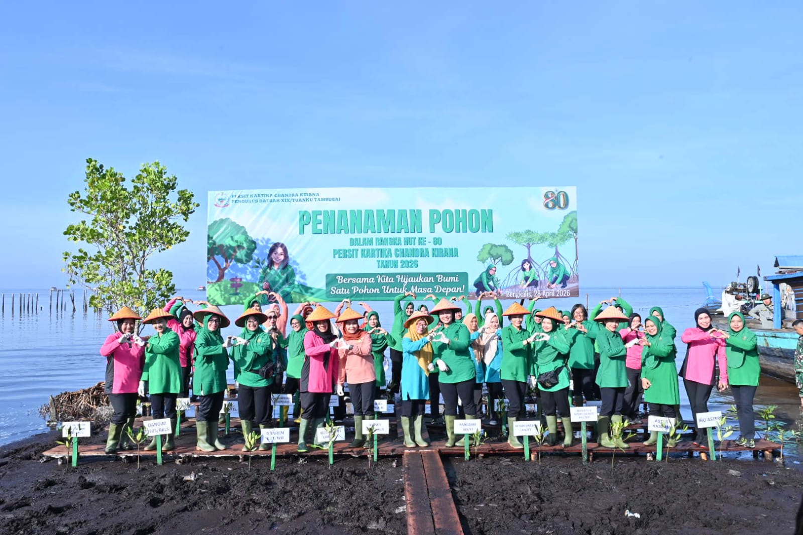BENGKALIS, PROKOPIM - Sekretaris Daerah Kabupaten Bengkalis, dr. Ersan Saputra, mewakili Bupati Bengkalis, menghadiri aksi nyata pelestarian lingkungan dalam rangka HUT Ke-80 Persit Kartika Chandra Kirana (KCK) Tahun 2026. Kegiatan tersebut dipusatkan di pesisir Pantai Prapat Tunggal, Kecamatan Bengkalis, Selasa (28/4/2026).
